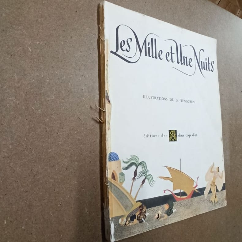 1840 Contes arabes traduits par Galland. Edition illustrée par les meilleurs artistes français. revue et corrigée sur l'édition princeps de 1704 , augmentée d'une dissertation sur les mille et une nuits , par le baron S. de Sacy. Paris Ernest Bourdin et Cie. 51, rue de Seine Saint Germain ( 1840 ) et ( 1843 ) pour les Mille et un jours , Contes Persans, Turcs et Chinois, par Petit de la Croix, Cardonne, Caylus, etc, augmentés de Nouveaux Contes traduits de l' arabe par M. Sainte-Croix Ajpot. Edition illustrée. à Paris chez Pourrat (Ed. 1843 ) . 4 volumes grand in 8. 1/2 veau glacé noir à petits coins . reliure homogène ; reliure époque. dos lisses très ornés de longs filets et fleurons dorés . titres dorés. date en queues des dos. couvertures et dos conservés. non rognés. ex libris G. Beugesco. typographie Lacrampe et Plon. reliures signées S. Magnin. abondamment illustrés in et hors textes.reliures et intérieur très frais. imprimés sur papier de choix. complet des 3 volumes et augmenté du volume des Contes des Mille et un Jours.Les Mille et un Jours . Contes Persans , turcs et chinois . ed. illustrée . Paris . Pourrat frères ed. couv. et dos . imp. Giroux. des feuillets habilement restaurés à l'époque .ref. carteret page 256. ref. Vicaire pages 862-863.TRES JOLIS EXEMPLAIRES exempt de rousseurs. Edition en premier tirage avec toutes les couvertures conservées, grands de marges, ébarbés et imprimés sur papier de choix.Tôme 1: couv. cons.+fx titre+frontispice rehaussé or+fx titre+ titre avec vignette de titre +viii et 482pp+ 4ème couv.et dos cons. 6 ht. et de très nombreuses ill. in texte.Tôme 2: couv.coul.cons.+fx titre+front. rehaussé or+fx titre avec vignette de titre+ titre avec vignette de titre + 572pp+4ème couv.coul. cons et dos. 7 h.t. et de très nombreuses il. in texte.Tôme 3: couv.coul. cons+fx titre+front. en noir+fx titre avec vignette de titre+ titre avec vignette de titre + 482pp+4ème couv.coul. cons et dos. 4 h.t. et de très nombreuses ill. in texte.Tôme 4: couv.coul cons+fx titre+ titre avec vignette de titre+436pp+4ème couv.coul. cons et dos. illustré de très nombreuses vignettes in texte.Nota: les trois premiers volumes, " les Mille et une nuits " Ernest Bourdin ; 51, rue de Seine Saint Germain , sans date ( date en queue des dos 1840 ), le quatrième volume " les mille et un jours " chez Pourrat , sans date; ( date en queue du dos 1843 )dates notées ultérieurement au crayon en bas des pages de titre, soit 1840, pour les 3 premiers volumes.
