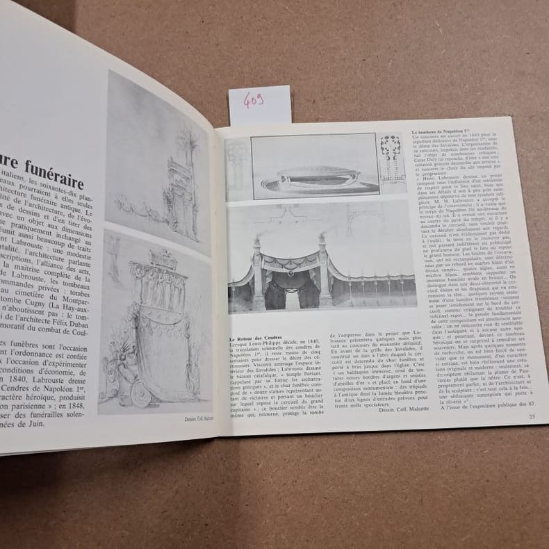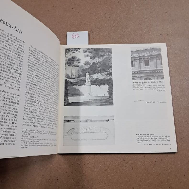 Architecte français né le 11 mai 1801, diplômé de l’École des beaux-arts de Paris et ancien pensionnaire de la Villa Médicis de Rome, Henri Labrouste se distingue par son utilisation du fer, de la fonte et des charpentes métalliques. Récompensé par de nombreux prix d’architecture, notamment le Grand Prix de Rome (1824) et le premier prix pour la construction de l’hospice cantonal des aliénés de Lausanne (1836-1837), Henri Labrouste est retenu pour réaliser la construction de la nouvelle bibliothèque Sainte-Geneviève (1838-1850) située place du Panthéon à Paris. Il dirige également les travaux de restauration et d’agrandissement de la Bibliothèque impériale (1854-1875), rue de Richelieu également à Paris. Architecte des lieux de recueillement et de méditation, il se définit lui-même comme sensible à l’architecture du symbole et du détail. Il meurt le 24 juin 1875. Bon état d’occasion