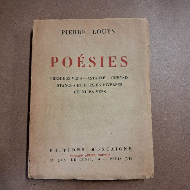 1930 - broché - Editions Montaigne - Fernand Aubier, Editeur - 1930 - In-8 (19 x 14,5 cm) broché - 219 pages - Ouvrage sous-titré : Premiers vers - Astarté - Chrysis - Stances et poésies diverses - Derniers vers