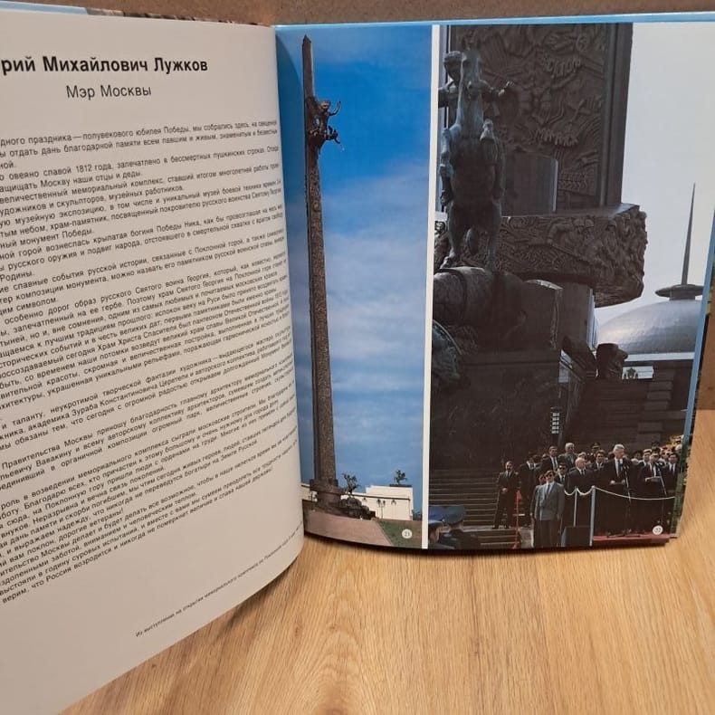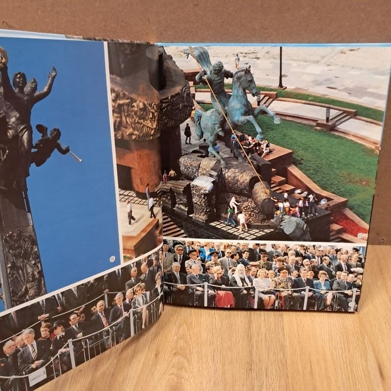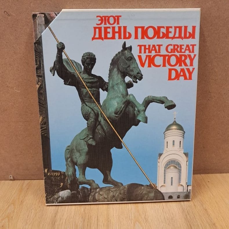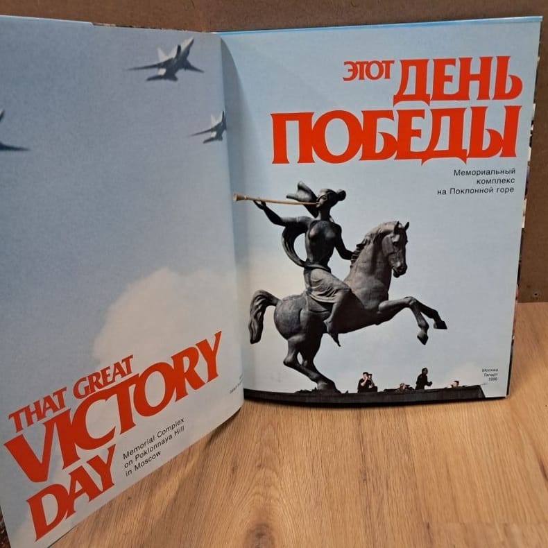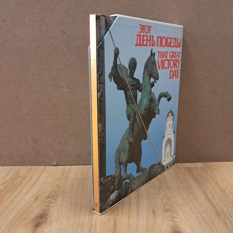 1996 - cartonné - Galart Publisher, Moscow - 1996 - In-folio (34 x 27,5) cartonnage dans son coffret illustré - 105 pages - Très nombreuses photographies en couleurs - ISBN : 5-269-00927-7 / 9785269009278 - Texte en russe - Ouvrage sous titré : "Memorial Complex on Poklonnaya Hill in Moscow / Мемориальный комплекс на Поклонной горе" - Cet ouvrage photographique enrichi de textes en russe rend hommage au 9 mai, le Jour de la Victoire. Créé en 1965 par Léonid Brejnev, ce jour férié marque la signature à Berlin de la capitulation finale de l'Allemagne nazie.