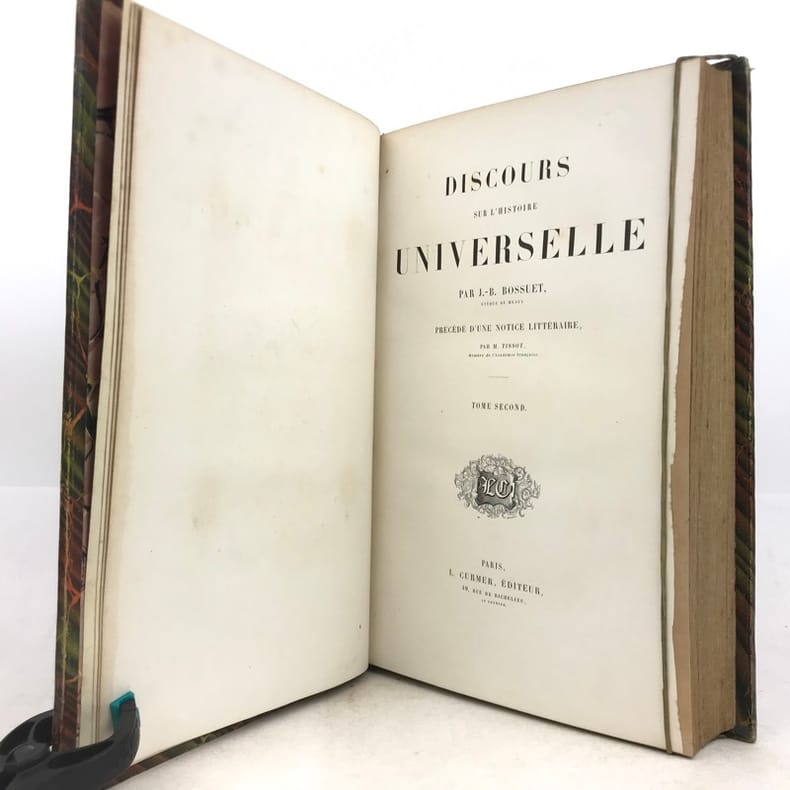 Paris, Chez ledentu , 1835; in-8, 368 pp., cartonnage de l'éditeur. Discours sur l'histoire universelle tome premier demi cuir.