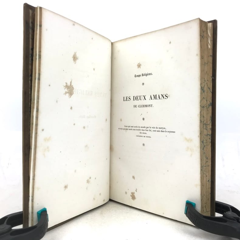 1 volume in-8 (21 x 13 cm), veau fauve (reliure de l’époque), dos à nerfs orné, roulette à froid encadrant les plats, médaillon à froid au centre des plats, filet doré sur les coupes, tranches marbrées, ex-libris de la comtesse de Salis, [4]-395-[3] pages (complet). Dos bruni et quelques traces d’insolation sur les plats, rousseurs. État correct. ÉDITION ORIGINALE. Amable Tastu (1795-1885) est une femme de lettres française, poétesse et librettiste, épouse du libraire Joseph Tastu. Collaboratrice du Mercure de France, elle est également l'auteur de plusieurs chroniques historiques et littéraires, dont certaines ont été approuvées par le ministère pour l’enseignement scolaire. Bon exemplaire.