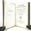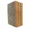 Paris, Le Normant, 1822. 3 vol. au format in-8 (223 x 138 mm) de 1 f. bl., cxx - 270 pp. et 2 ff. bl. ; 1 f. bl., 2 ff. n.fol., 401 pp. et 1 f. bl. ; 1 f. bl., 2 ff. n.fol., 354 pp. et 1 f. bl. Reliures uniformes de l'époque de pleine basane flammée havane, plats jansénistes, dos lisses et légèrement teinté vert-d'eau ornés d'un décor ''à la grotesque'' comportant roulettes dorés, filets sinusoïdaux dorés, jeu de petits filets obliques dorés, larges fleurons romantiques dorés, entrelacs de filets en pointillés dorés, semis de petits fleurons dorés, pièces de titre de maroquin vieux-rouge, pièces de tomaison de maroquin havane, titre doré, tomaison dorée au centre d'un ovale stylisé doré, palette dorée en tête et queue, filet doré sur les coupes, toutes tranches jaunes.