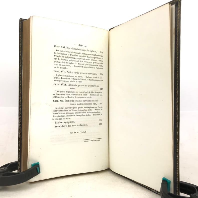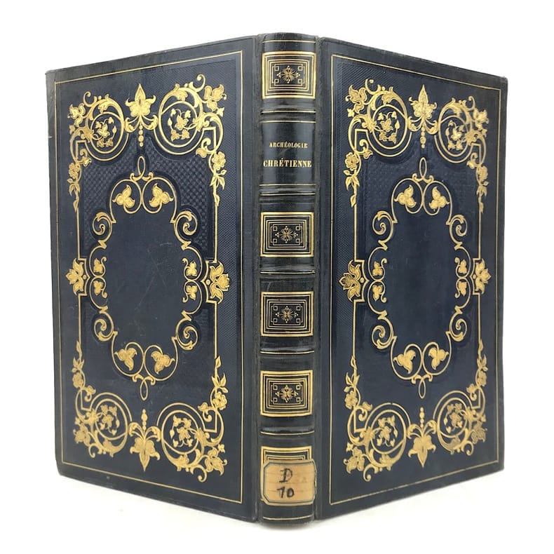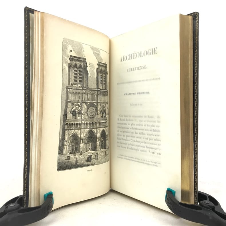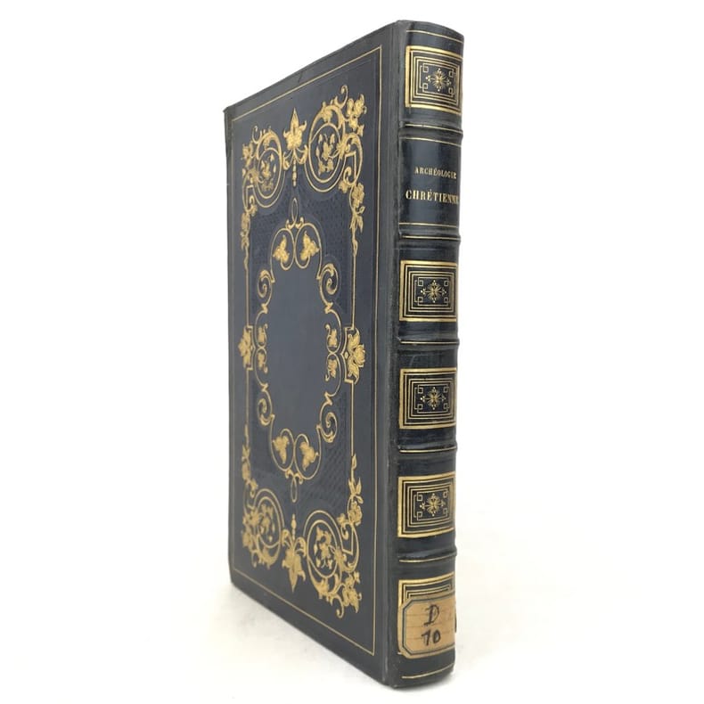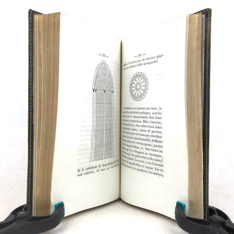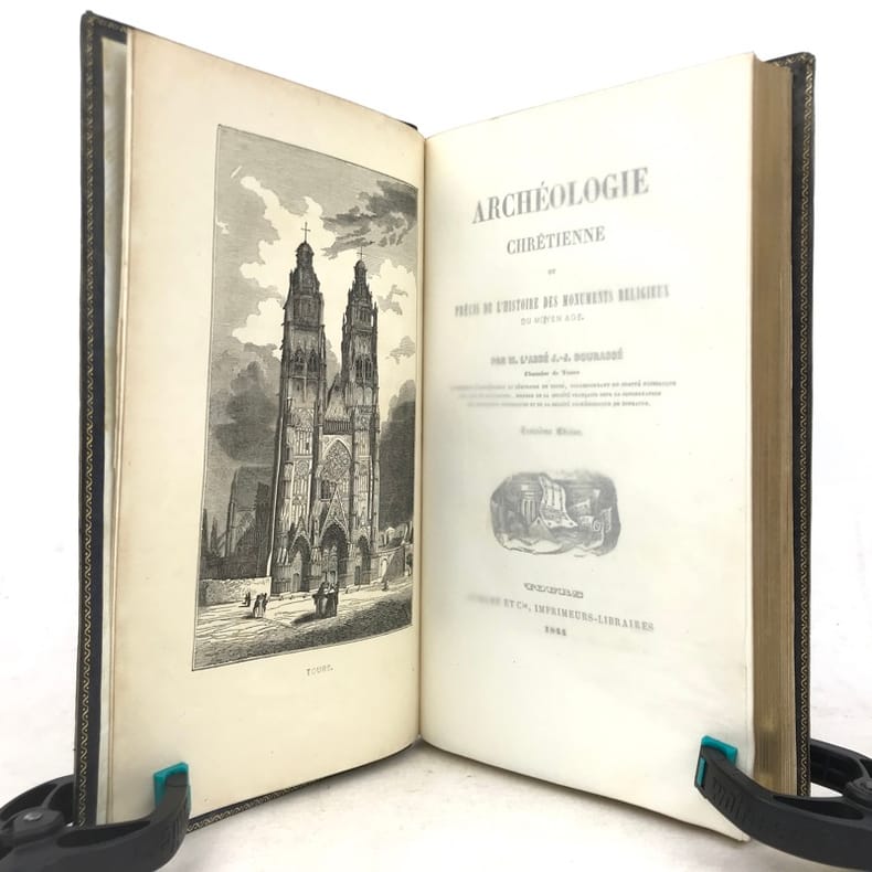 Tours, Ad Mame & Cie, Imprimeurs-Libraires, 1847 ; in-8 (138 x 217 mm), 4-380 pp. + frontispice et 3 pl. hors-texte, reliure d'éditeur plein cuir, coloris bleu foncé, dos lisse orné de filets et caissons dorés, plats estampés avec un encadrement doré, tranches marbrées (frottements, chants et coins légèrement usés, mors légèrement fendu, quelques petites rousseurs). 4ème édition. L'auteur, chanoine de Tours, est un professeur d'archéologie au Séminaire de Tours, correspondant du Comité historique des Arts et Monuments, membre de la Société française pour la Conservation des Monuments historiques et de la Société archéologique de Touraine, etc. Quelques illustrations en noir et blanc.