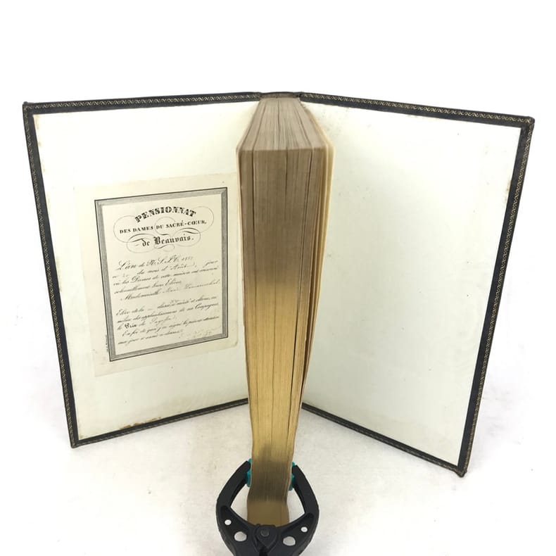 1844 reliure romantique grenat (full romantic binding) in-octavo, dos havane insolé (fading spine), fers spéciaux pour le dos et les plats (specials blocking stamps on the spine and on the cover), tranches jaspées (marbled edges) - quelques cahiers déboîtés (some leafs dislodged), marque-page en tissu (bookmark in tissue), illustrations in et hors-texte (in text and full page engraving), VIII+380 pages, 1844 à Tours Alfred Mame et Compagnie Imprimeurs-Libraires,