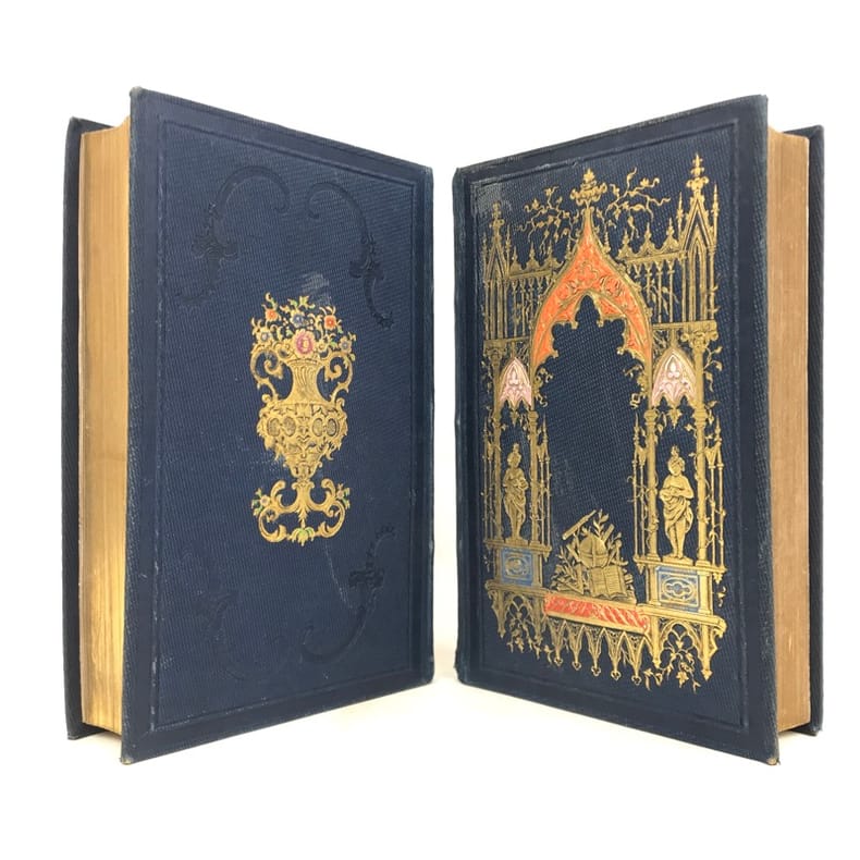 1852 percaline bleue nuit éditeur, ornée d'un décor à la cathédrale un peu passé (mouillures intérieures au premier volume). 2 vol. in-12, 7 et 8 planches doubles, P. Didier 1852,
