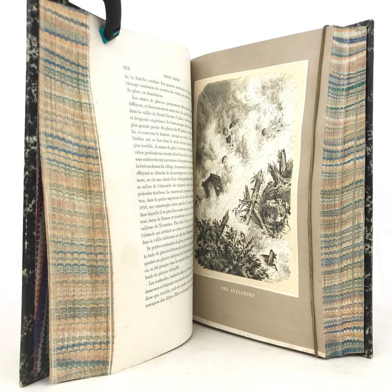 1 volume in-8 ( 23,5 x 15,5 cm), demi-chagrin brun (reliure de l’époque), dos à nerfs, tranches marbrées, xxiv-[2]-864-[4] pages (complet). Très légers frottements sur le dos, coins émoussés, pâles rousseurs éparses dans le texte, sans gêne de lecture, et sur les planches. Bon état. Seconde édition illustrée d’un titre gravé en frontispice et de 24 planches hors texte tirées sur fond gris d’après W. Georgy et E. Rittmeyer. Texte de Frédéric de Tschudi (1820-1886), traduit de l’allemand par O. Bourrit. Bon exemplaire.