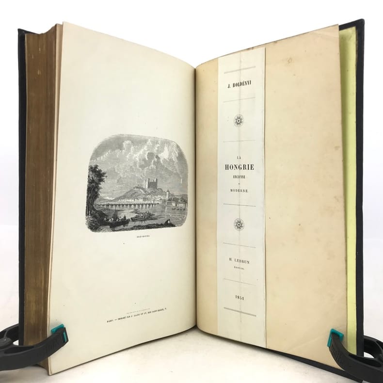 Edition originale.La première partie est historique, avec une lourde insistance sur la "Guerre de l'Indépendance" (en fait la révolution de 1848-49) ; la seconde un recueil de mélanges nationaux (costumes, langues, littérature).Janos Boldényi est le nom de plume de l'écrivain magyar Pal Szabo, journaliste exilé à Paris après les événements de la répression russe.Vicaire IV, 166-167.Vignette ex-libris "Bellevue. Baigts-de-Béarn". - - VENTE PAR CORRESPONDANCE UNIQUEMENT