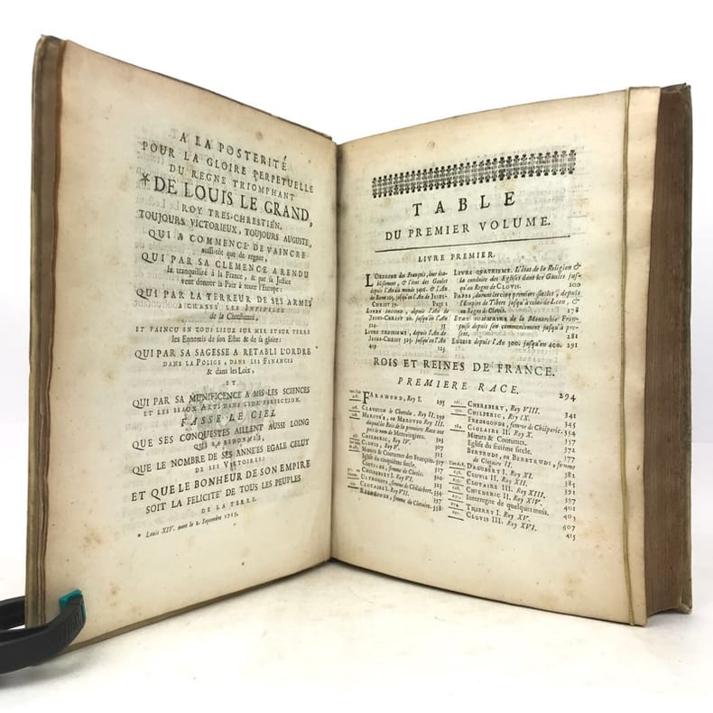 Cette quatrième édition se décline en deux formats : in-4 et in-8. Le succès prodigieux de ce simple cadre chronologique détaillé, depuis l'originale de 1744, manifeste bien le vide historiographique que l'ouvrage venait combler, surtout à l'usage du public non spécialisé.Cioranescu, XVIII, 33 766 et 33 767 (3e et 5e éditions).Relié avec : Supplément au Nouvel abrégé chronologique de l'histoire de France, contenant les additions & corrections faites à cet ouvrage dans la Ve édition, 1756. Pour servir à la troisième & à la quatrième édition. Paris, Prault père, Prault fils, Desaint & Saillant, 1756, [6] ff. n. ch. (faux-titre & titre, avertissement, dédicace, préface), 153 pp. - - VENTE PAR CORRESPONDANCE UNIQUEMENT
