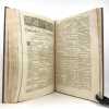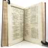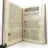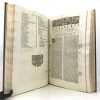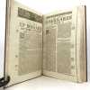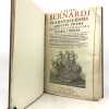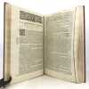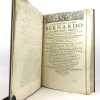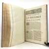 6 tomes en 2 volumes in-folio (36,5 x 25,5 cm), demi-basane fauve (reliure postérieure contemporaine), dos à nerfs orné, pièces de titre et de tomaison en maroquin orange et citron, gardes renouvelées, titre en rouge et noir, texte sur double colonne, deux ex-libris manuscrits sur les pages de titre (“I. Collin” et “M. L’Epinon”) et ex-libris embossé à la dernière garde du second tome (“M. et Mme Philippe Guibert, à Paris”), [18]-119-152-[4]-272 ; [4]-139-[1]-59-[1] ; [12]-140-[8]-384-[4]-92-14-[86] pages (texte complet). Feuillet â1 manquant au premier volume (probablement une page de faux-titre ?), cahiers F et R du volume II reliés dans le désordre, exemplaire lavé, premier volume du second tome restauré en pliure, quelques mouillures angulaires au tome I, rares rousseurs. État très correct. Nouvelle édition, ornée de l’emblème de Paris gravé à chaque page de titre. Bernard de Fontaine (1090-1153), abbé de Clairvaux, est un moine bourguignon, réformateur de la vie religieuse et saint catholique. Ses œuvres évoquent principalement le cheminement vers Dieu, sa spiritualité ou encore la mysticité de la Trinité. Certaines de ses propres thèses restent proches des croyances chrétiennes en usage avant le schisme de 1054 : il ne célèbre pas, par exemple, l’Immaculée Conception. Il s’oppose également à saint Abélard, et en particulier son approche aristotélicienne lors de ses études théologiques. Rare exemplaire.
