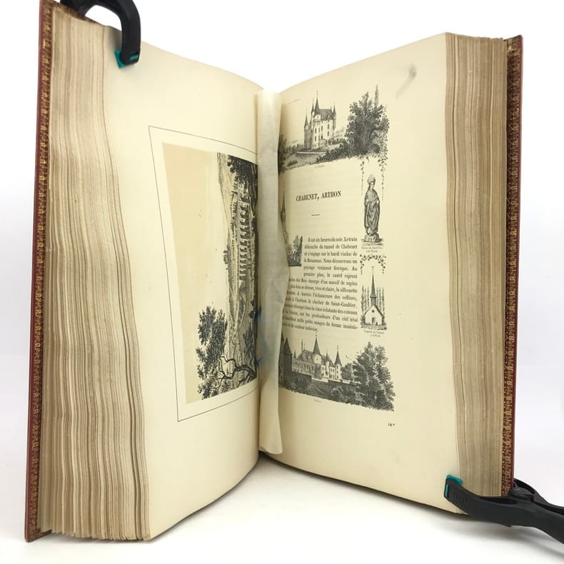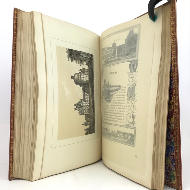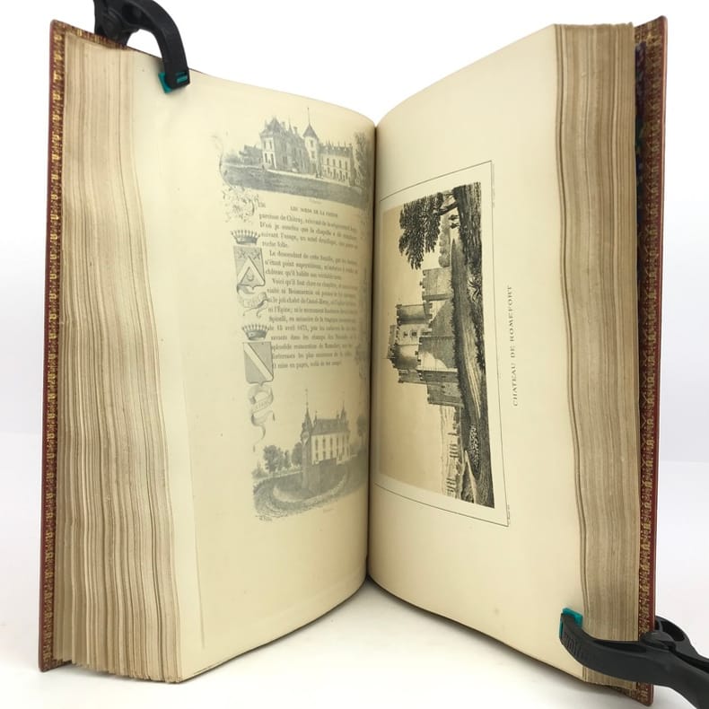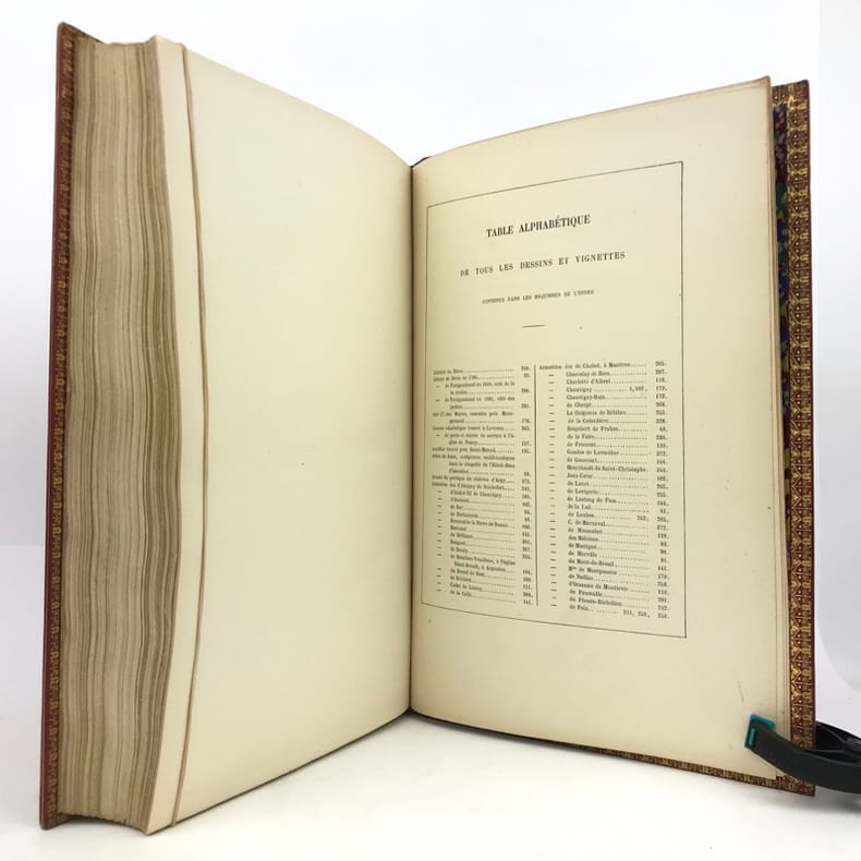 Seconde édition. Bien complet des 40 lithographies en deux tons représentant les principaux châteaux et monuments du département. Très bon état d’occasion