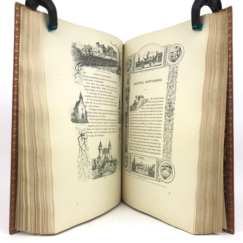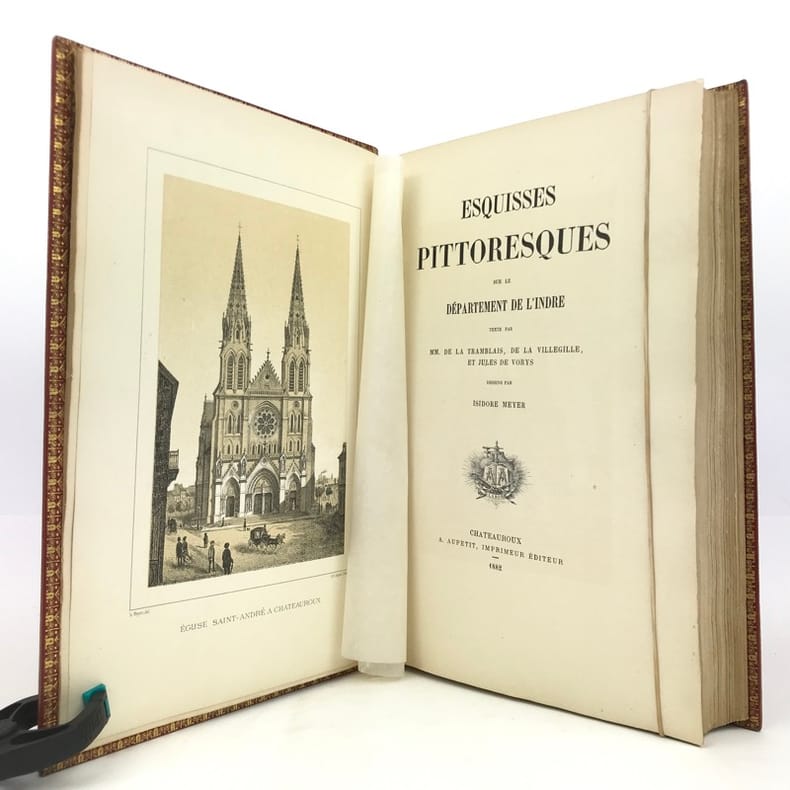 Châteauroux, A. Aupetit, Imprimeur Éditeur, 1983 ; in-4 (218 x 299 mm), [3]-XVI-438-[4] pp., reliure demi-cuir, coloris prune, dos orné d’un écu à 2 nerfs (signé Raymond Guionnot, relieur-doreur). Édition imprimée en fac-similé de l'édition de 1882; exemplaire numéroté 54/150 (600) , tiré sur papier centaure ivoire (4e édition). Illustré par Isidore MEYER.