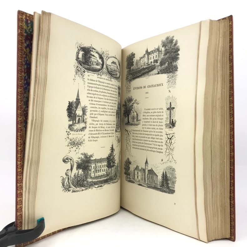 Chateauroux, A. Aupetit 1882 In-4 broché sous jaquette rempliée, IX-428 pp. Texte est imprimé dans un encadrement gravé différent pour chaque ville, très nbr. vignettes in-texte, 40 planches lithographiées hors-texte. Dos renforcé. Intérieur très frais.