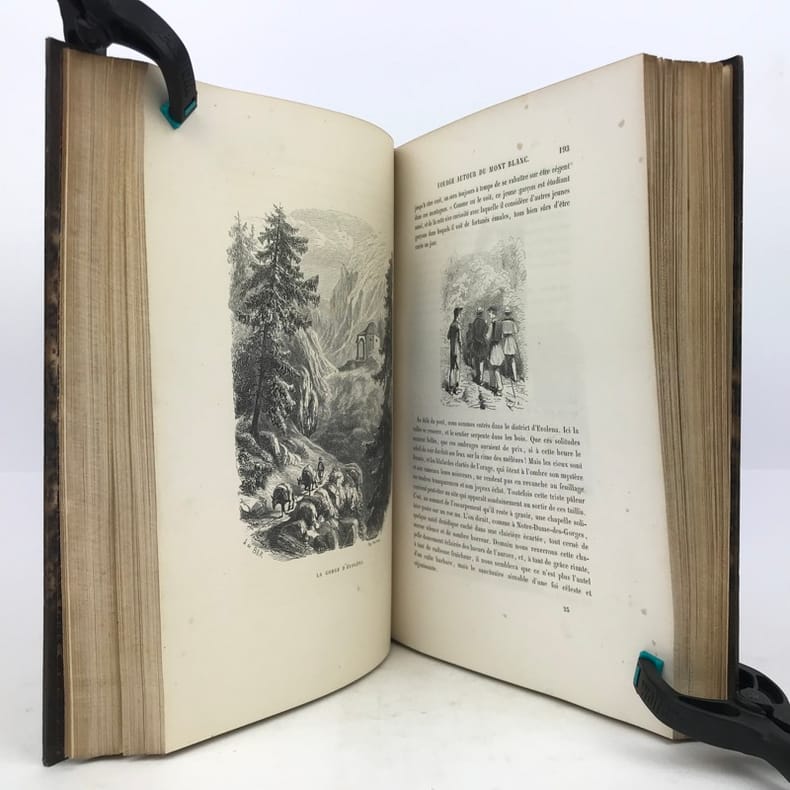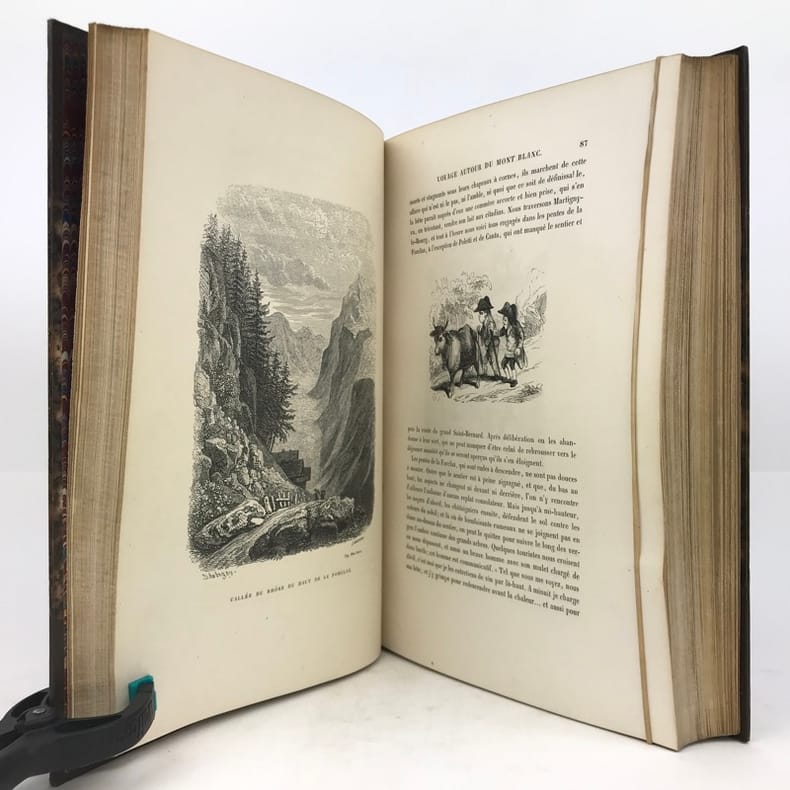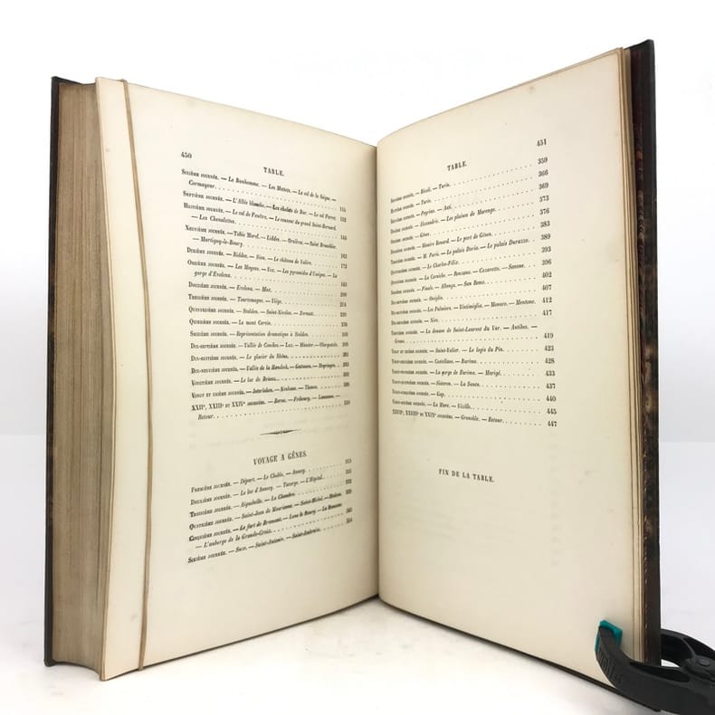 Vicaire VII 862; Lonchamp 2969, Blondel S 369, Sander 688. - Erste Ausabe des oft wiederaufgelegten Werkes. Enthält die Reisen: Voyage à la Grande Chartreuse 1833; Voyage autour du Mont Blanc 1842; Voyage à Gênes 1834. - Vorsätze angestaubt. Gebräunt u. vereinzelt leicht stockfleckig. Einband stärker berieben und bestossen.
