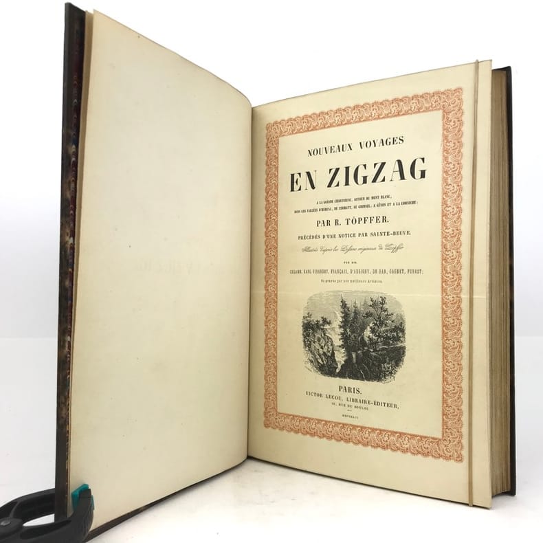 Garnier frères 1929 in12. 1929. Broché. Nouveaux voyages en zigzag à la Grande Chartreuse autour du Mont Blanc dans les vallées d'Herenz de Zermatt au Grimsel à Gênes et à la Corniche par R. Töpffer précédés d'une notice par Sainte-Beuve illustrés d'après les dessins originaux de Töpffer par MM. Calame Karl Girardet Français d'Aubigny de Bar Gagnet Forest