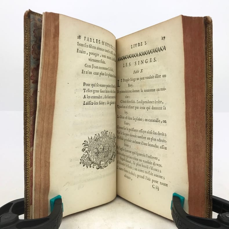 Orné d'un frontispice de Coypel. Charmante édition de ces fables qui connurent un grand succès. !!! !!! Du 3 octobre au 24 octobre il n'y aura pas d'expédition de colis: le libraire est en voyage. La librairie reste ouverte et nous répondrons sporadiquement aux emails. Merci pour votre compréhension. ––> From 3 October to 24 October, there will be no parcel deliveries as the bookseller will be travelling. The bookshop will remain open and we will respond to emails sporadically. Thank you for your understanding.