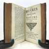 Cinquième édition des uvres de Voiture, dont l'originale est parue en 1648; et édition originale des Nouvelles uvres de Voiture. Un frontispice de Mellan pour le premier volume, un bandeau et une lettrine dans l'épître et un beau portrait de l'auteur par Champaigne gravé par Nanteuil. Reliure en pleine basane brune d'époque. Dos à nerfs richement orné. Pièce de titre en maroquin rouge. Un manque en coiffe. Accroc avec manque au mors supérieur en queue. Frottements. Bon exemplaire. Voiture (1597-1648) fut toute sa vie un galant et un courtisan, brillant dans les salons et jouant aux jeux. Son talent épistolaire lui valut de mettre longtemps en France la prose à la mode, et ses poésies excellent dans le ton maniériste et précieux, même s'il sait tour à tour être trivial quand il le faut. C'est un personnage incontournable de la scène littéraire du début du XVIIe, un vrai personnage de Molière. Voiture, c'est tout d'abord un style, non seulement dans ses lettres (Lettres amoureuses) et ses poésies mais également dans sa prose, voir pour exemple les délicieuses Métamorphoses. Ses uvres furent à l'image de l'homme, galant, enseignant le beau langage et les belles manières aux habitués de l'hôtel de Rambouillet. Sa renommée fut très grande durant son siècle et il demeure un emblème pour le XVIIème siècle. - Photographies et détails sur www.Edition-Originale.com -