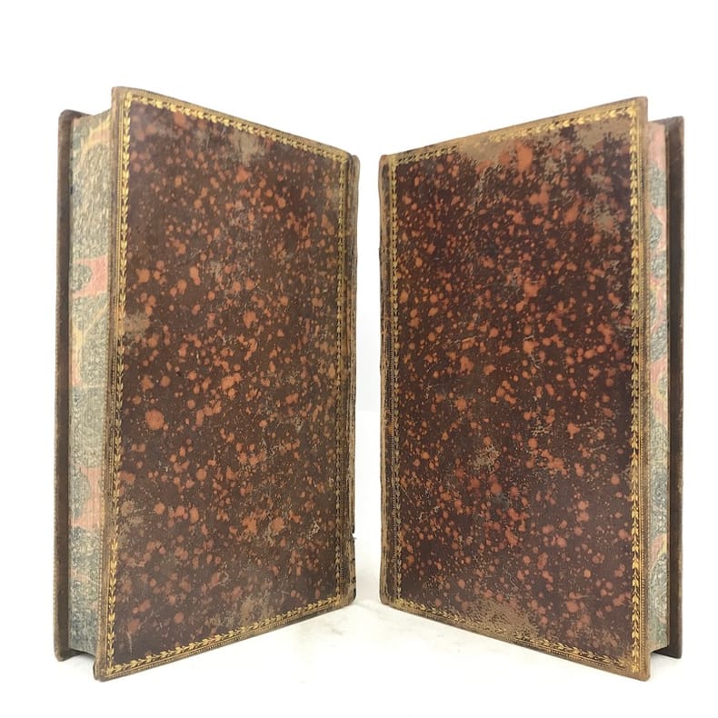 Paris, Bossange, Masson et Besson, An XI-1803, 2 volumes in-8°, LXXXVI-1ff-353 et 354 pages,plein veau blond, encadrement de fleurs dores sur les plats, dos lisses ornés de fleurons dorés, pièces de titre et de tomaison rouges encadrées de cuir mosaïqué vert, dentelles intérieures dorées,dentelles dorées sur les coupes, trois tranches dorées (reliure de l'époque), deux coins abîmés(coins inférieurs des deuxièmes plats de chaque tome), manque au mors inférieur du tome 2.