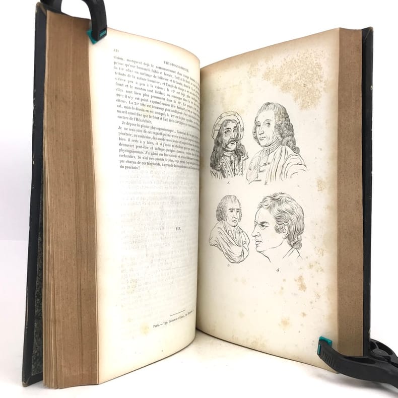 (Paris, Librairie Fracaise et Etrangere), (1841), in-8vo, 120 gravures en n./bl., frontiespiece M. Lavater dans son jardin gravée par Stober, les planches de physionomie num. 2 à 120 avec env. 700 détails gravées, coouverture muet.