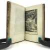 Superbe exemplaire à grandes marges (hauteur : 167 mm) revêtu d’une élégante reliure en maroquin rouge du XVIIIe siècle de Derome le Jeune avec son étiquette. S.l. [Paris, Quillau], 1718. Petit in-8 de (7) ff. dont (1) f. frontispice, 164 pp., 29 planches hors-texte non-numérotés dont 13 sur double-page. Maroquin rouge, diverses roulettes dorées encadrant les plats avec fleuron d'angle, dos lisse finement orné, coupes décorées, roulette intérieure dorée, tranches dorées, doublures et gardes de tabis bleu. Reliure du XVIIIe siècle de Derome le jeune avec son étiquette. 167 x 98 mm.