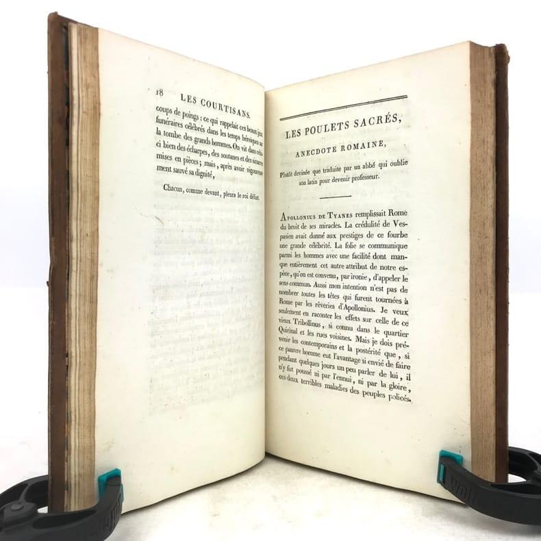 Édition originale. Libéral favorable à une monarchie constitutionnelle, l'auteur avait fui la France sous la Terreur. De retour sous le Directoire, il publia ce spirituel pamphlet sur les revirements, les mensonges et la courtisanerie de son temps. On trouve à la fin un article plus sérieux sur les devoirs des avocats envers les accusés. Nommé censeur dramatique par Fouché, Lemontey entra à l'Académie en 1818. Bel exemplaire. Monglond, La France révolutionnaire et impériale, V, 508.