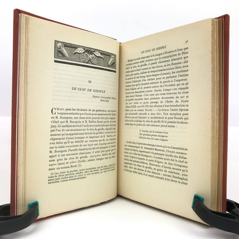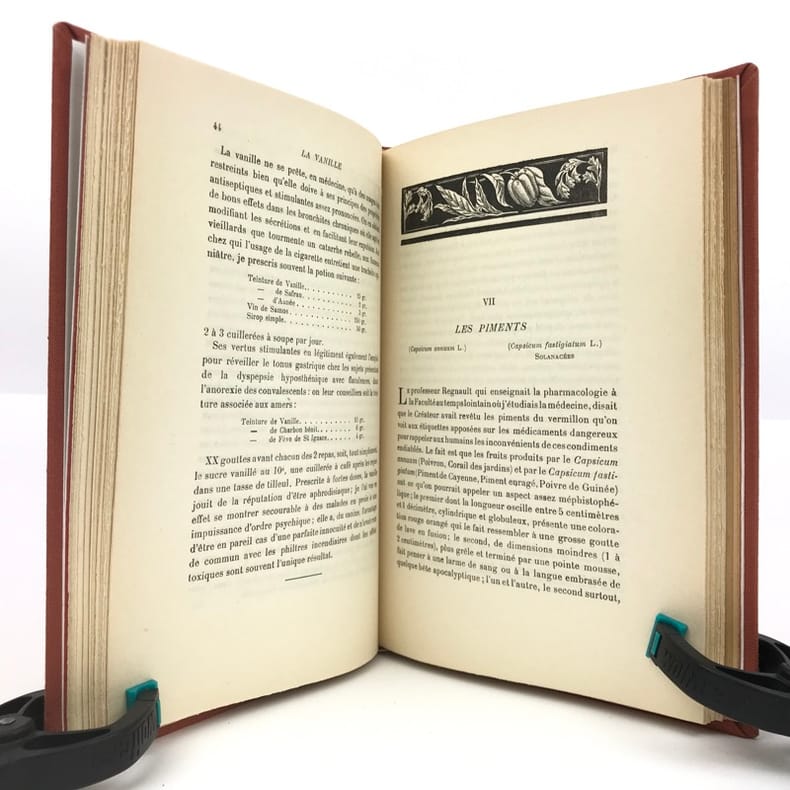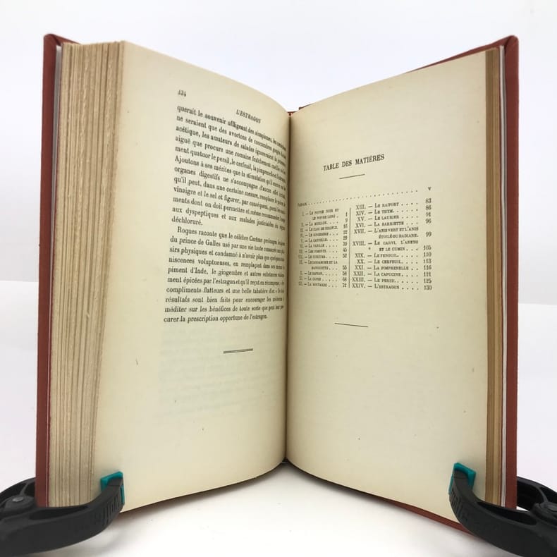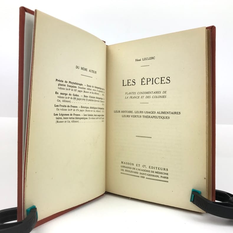 1 volume in-8 (20,2 x 14,3 cm), bradel toile brique (reliure moderne), pièce de titre noire, couverture et dos conservés. x-134-[2]- Catalogue de l’éditeur [48] pages (complet). ÉDITION ORIGINALE de cet intéressant manuel consacré aux épices, illustré de bandeaux ornementaux pour chaque chapitre. Plaisant exemplaire bien complet du catalogue de l’éditeur, relié in fine. Vendu 02/10/2025