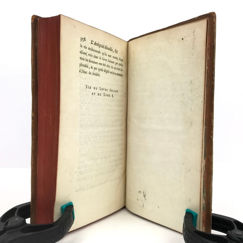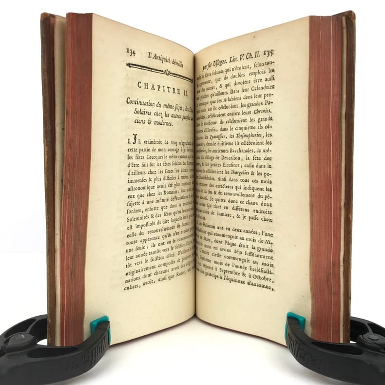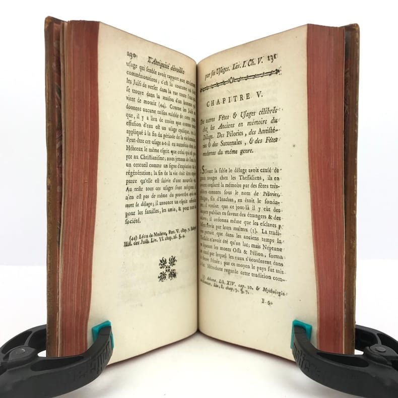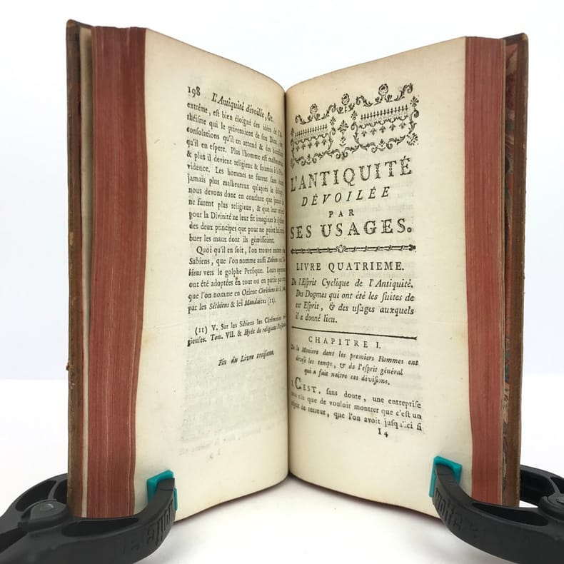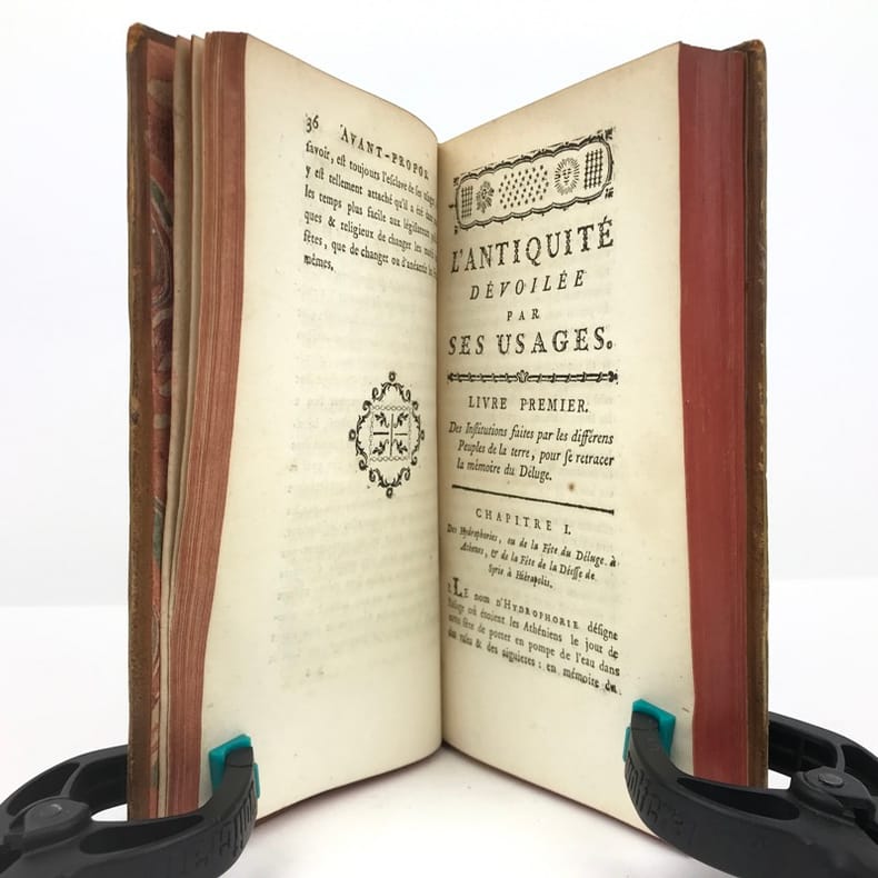 Ouvrage posthume, remanié par d’Holbach, l’Antiquité dévoilée ambitionne d’interpréter superstitions et les pratiques religieuses de l'humanité par l'empreinte cataclysmes de la nature, notamment le déluge. Bon état d’occasion