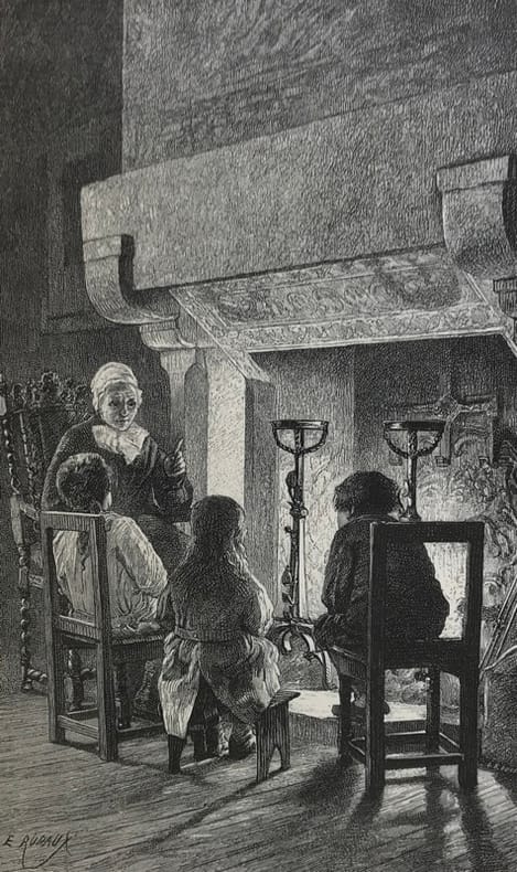 1906, Sandoz et Fischhbacher, in-8 broché de 232 pages, La chanson de l'enfant, aux mères : les berceaux - figures d'enfants; aux enfants : impressions d'enfants. Souvenirs- la légende enfantine- aux enfants de France | Etat : état moyen, dos très abîmé, cahiers retenus par quelques fils et la jaquette en papier cristal, coiffes absentes, rousseurs (Ref.: ref85361)