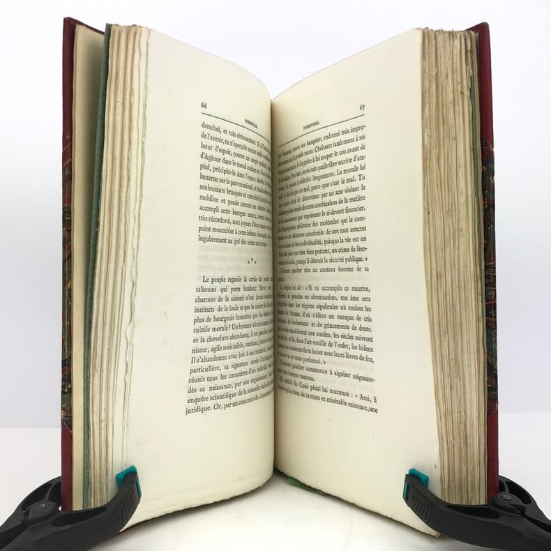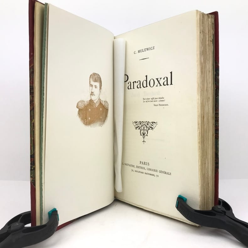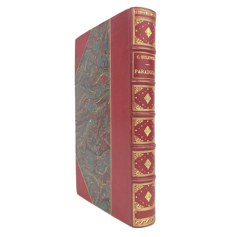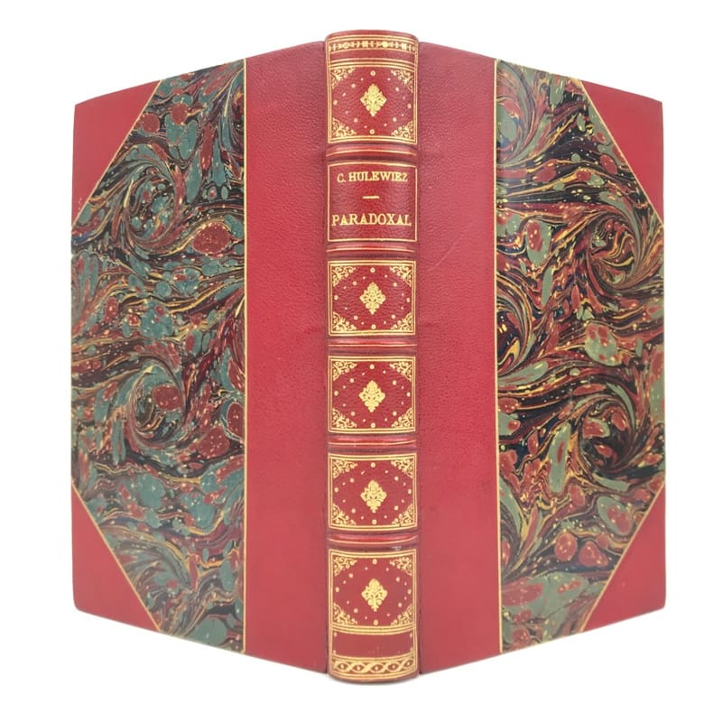 1 volume in-8 (22,5 cm x 13 cm), demi-maroquin rouge à coins (reliure de l’époque), dos à nerfs orné de motifs dorés, tête dorée, couverture conservée, envoi sur la page de faux-titre. [2]-viii-308-[4] pages (complet). Reliure immaculée, rares rousseurs. Bon état. ÉDITION ORIGINALE de ce recueil de poèmes; illustrée d’un portrait en frontispice. Bel exemplaire avec envoi de l’auteur : “À Monsieur Justin Dellanges, hommage empressé et très reconnaissant, de l’auteur”. Kazimierz Hulewicz (1864-1939), écrivain polonais, directeur de théâtre... Bel exemplaire.