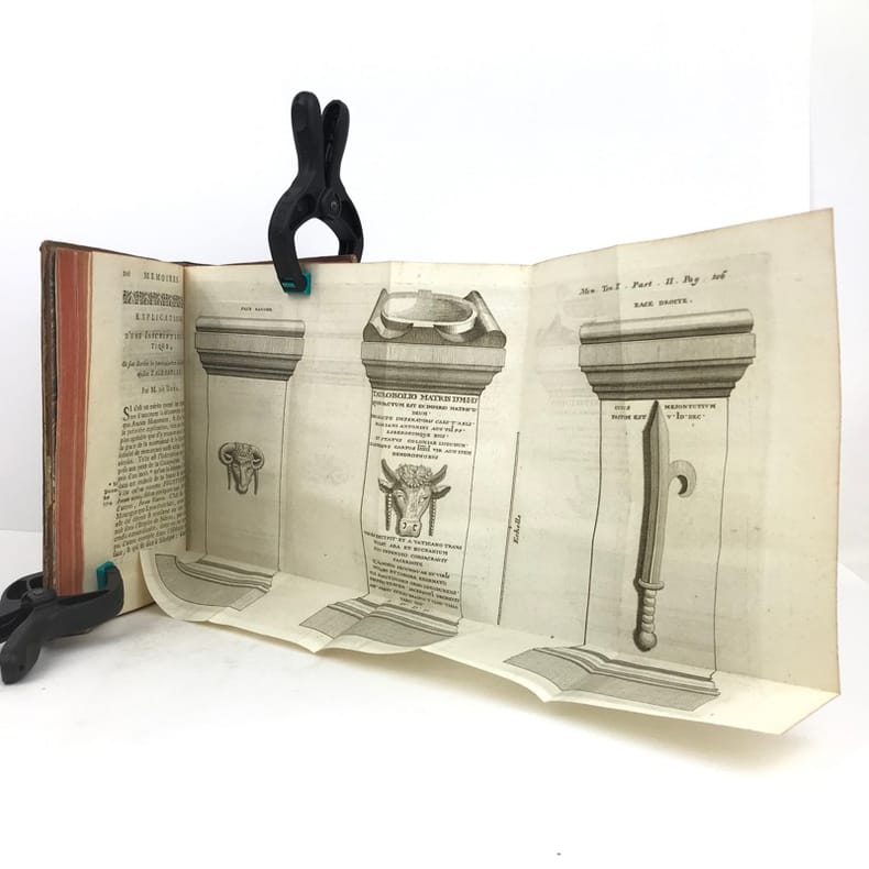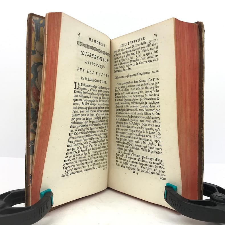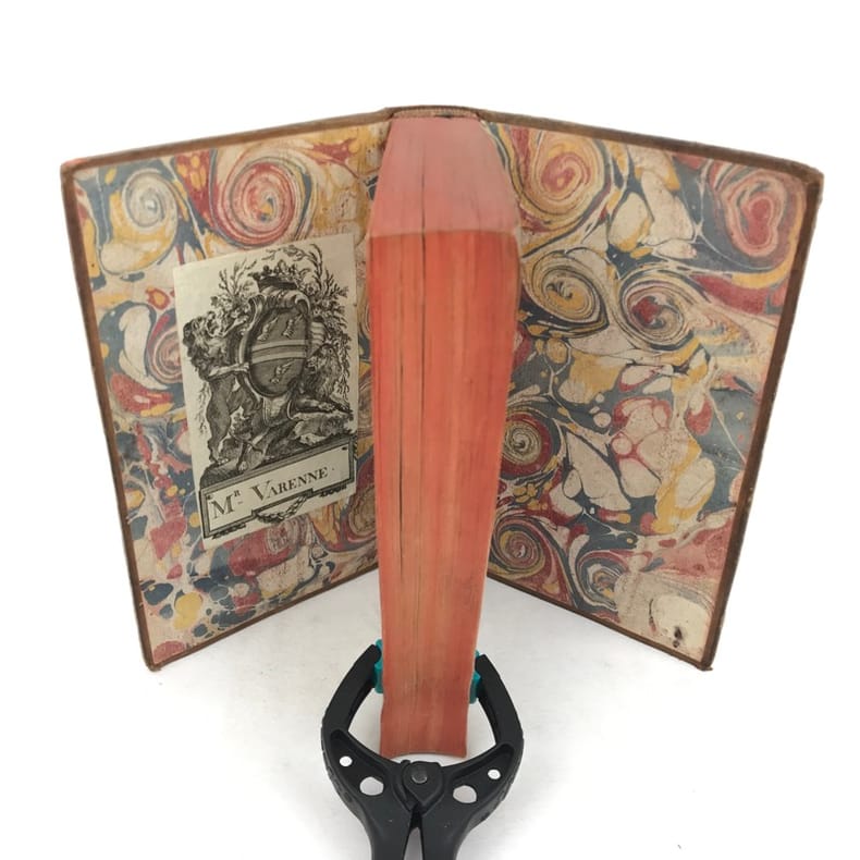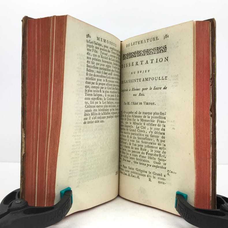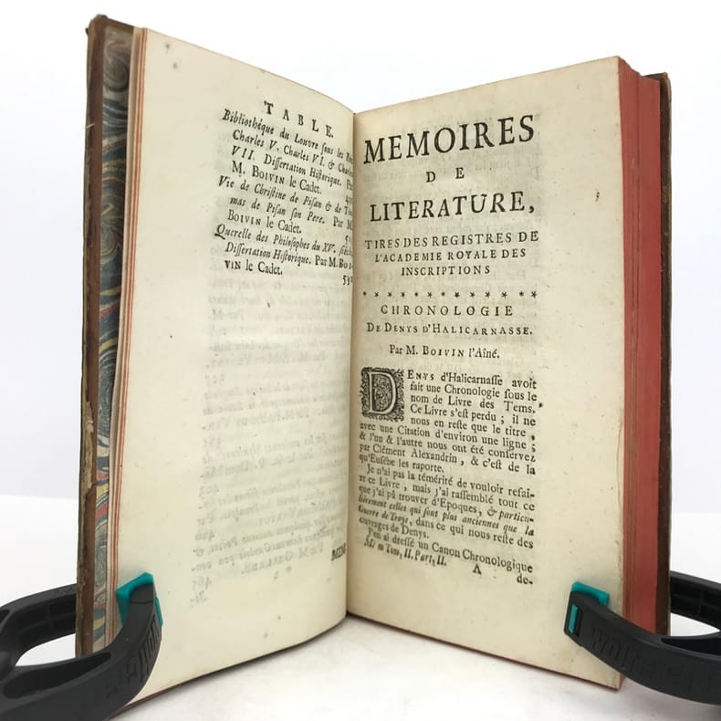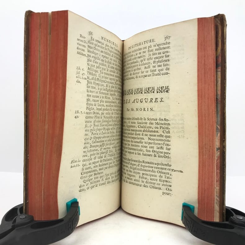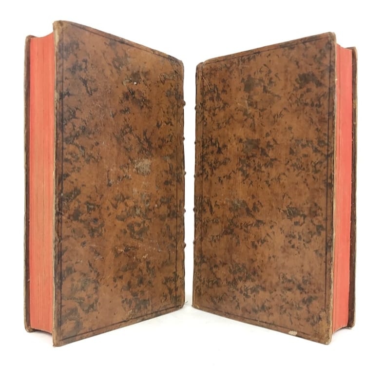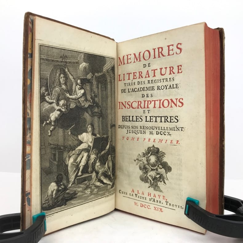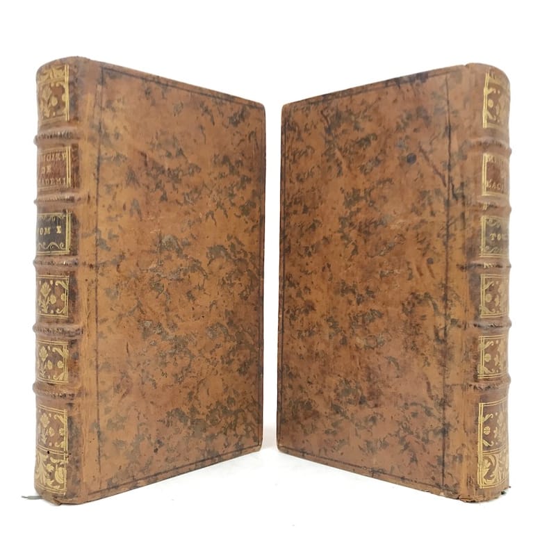 2 volumes in-12 (16,5 x 9,5 cm), veau marbré (reliure de l’époque), dos à nerfs orné, filet à froid encadrant les plats, filet doré sur les coupes, tranches rouges, titre en rouge et noir, ex-libris aux armes de M. Varenne, [6]-506-[2] ; [6]-554 pages (complet). Quelques rousseurs éparses. État très correct. Édition illustrée d’un frontispice et de 9 figures hors-texte dépliantes. Publiés à intervalle régulier de 1663 à 1780, ces mémoires regroupent les travaux scientifiques notables de l’année concernée - ici les années 1710 - et méritant d’être publiés. Bon exemplaire.