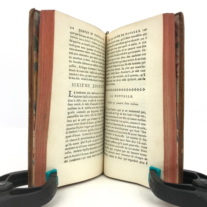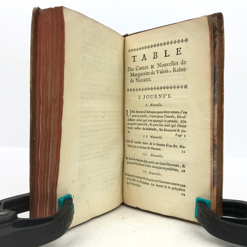 Édition des 72 romans de Marguerite de Navarre (1492–1549), réédition de l'édition de Berne 1780–81. Les romans sont suivis des «Nouvelles d’Antoine-François Grazzini, dit Le Lasca», soit deux romans du chimiste et poète de la Renaissance italien AF Grazzini (1504-1584) , co-fondateur de l’Académie La Crusca à Florence et qui pris le nom de «Il Lasca».bel exemplaire incomplet des autres volumes P1-2O