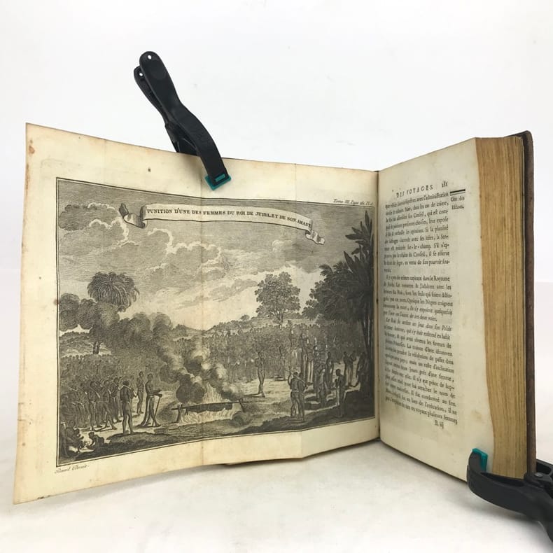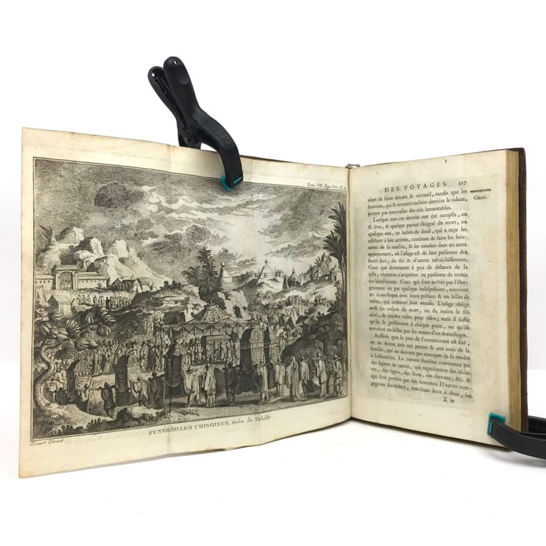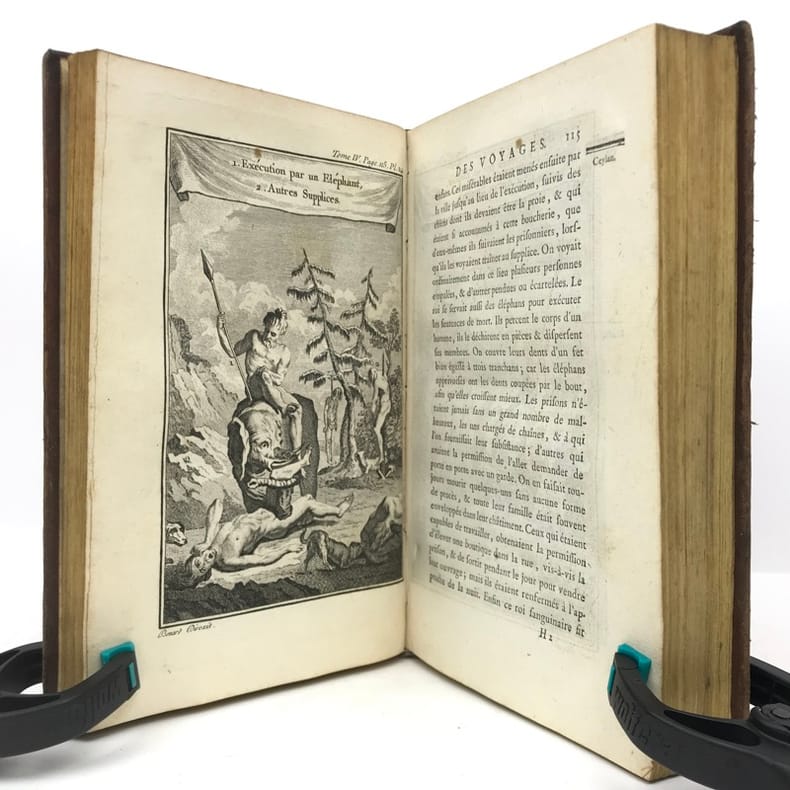 Ouvrage illustré pour les 21 premiers volumes de 82 planches hors-texte dont 16 dépliantes et d'une grande table dépliante des langues parlées dans les mers du sud. Les volumes 22 et 23 contiennent 1 grande carte dépl. et 6 planches dont 2 dépl., en outre 4 planches dont 2 dépl. sont en double exemplaire. Notre exemplaire contient les trois voyages de Cook. Ex libris armorié gravé : Pecy - blbliothèque de M. Tassin de Villiers.