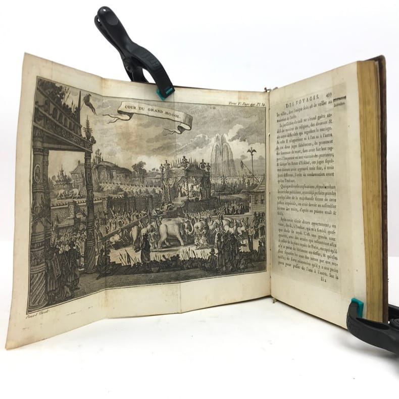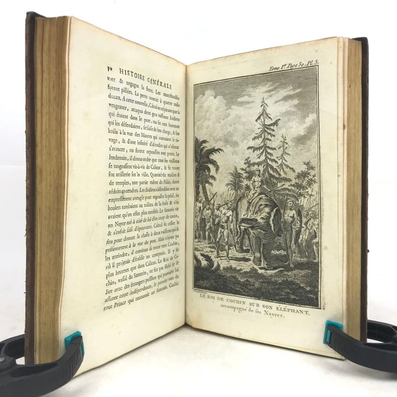 1780 A Paris, Hôtel de Thou, rue des Poitevins - 1780 - In-4 (environ 20 x 13,5 cm), demi basane brun clair, dos lisse, filets et caissons ornés à la cocarde, pièce de titre brun clair et tomaison dorés, tranches rouges - 671 pages - Carte rempliée et gravures hors texte