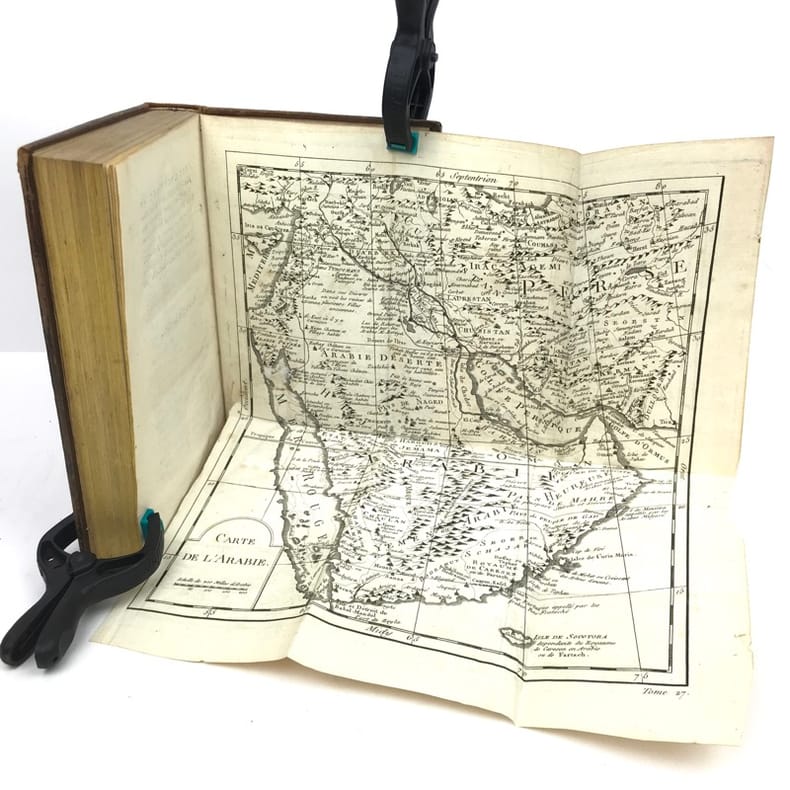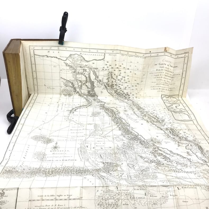 1780 A Paris, Hôtel de Thou, rue des Poitevins - 1780 - In-4 (environ 20 x 13,5 cm), demi basane brun clair, dos lisse, filets et caissons ornés à la cocarde, pièce de titre brun clair et tomaison dorés, tranches rouges - 510 pages - Cartes et gravures hors texte rempliées