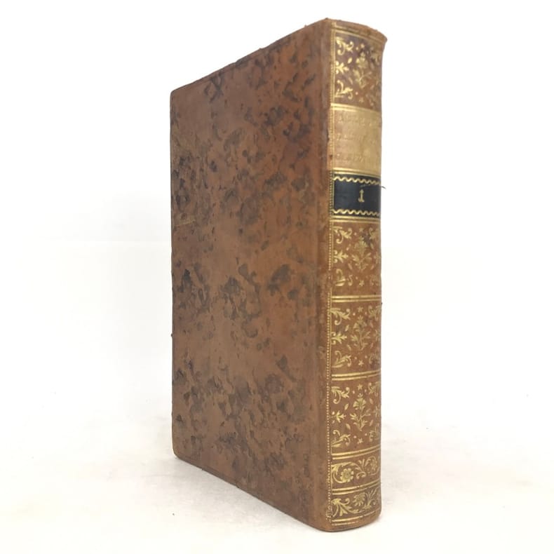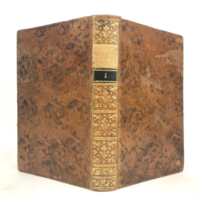 1786 A Paris, Hôtel de Thou, rue des Poitevins - 1786 - In-4 (environ 20 x 13,5 cm), demi basane brun clair, dos lisse, filets et caissons ornés à la cocarde, pièce de titre brun clair et tomaison dorés, tranches rouges - 558 pages - Gravures hors texte rempliées