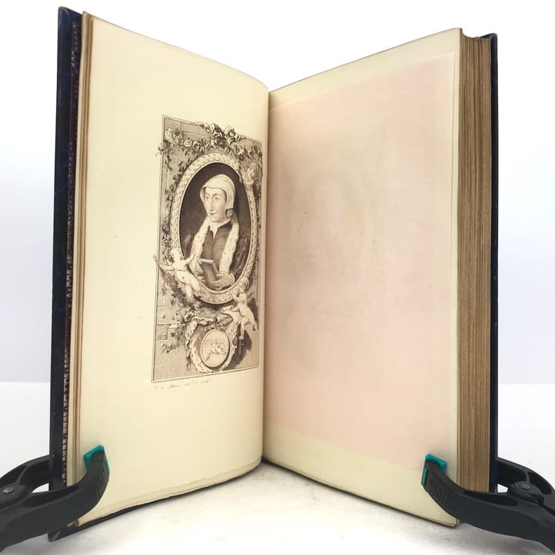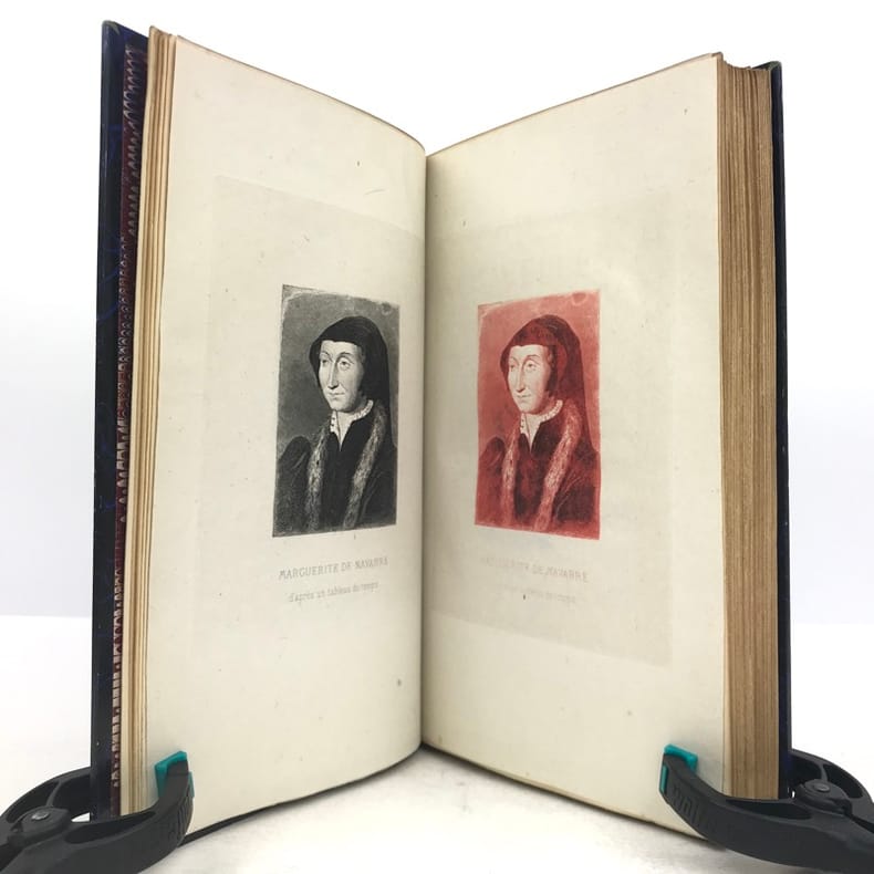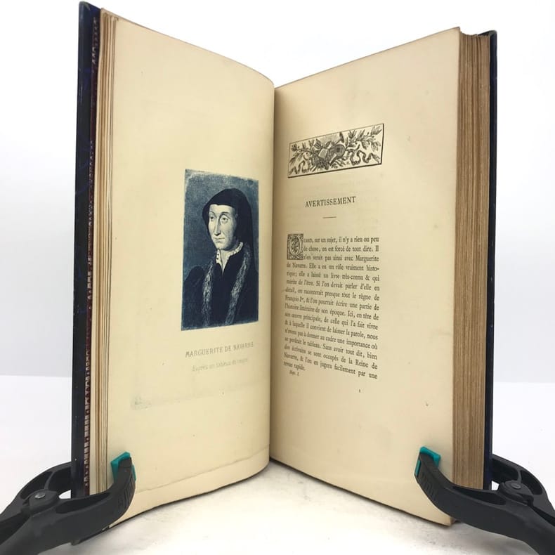 Illustré de portraits (dont celui de Marguerite d’Angoulême en frontispice), vignettes, pl.anches gravées, bandeaux et culs-de-lampe d'après Freudenberg, ainsi que quelques fac-simile de documents anciens. Tiré à seulement 395 exemplaires numérotés, celui-ci est un des 100 sur Hollande Van Gelder Zonnen fabriqué exprès pour cette édition avec filigrane aux armes, emblèmes & devises de Marguerite de Navarre, avec deux suites des gravures hors-texte dont une en noir sur papier teinté, et la seconde en bistre sur papier Van Gelder (n° 248). Très belle édition savante et luxueuse. !!! !!! Du 3 octobre au 24 octobre il n'y aura pas d'expédition de colis: le libraire est en voyage. La librairie reste ouverte et nous répondrons sporadiquement aux emails. Merci pour votre compréhension. ––> From 3 October to 24 October, there will be no parcel deliveries as the bookseller will be travelling. The bookshop will remain open and we will respond to emails sporadically. Thank you for your understanding.