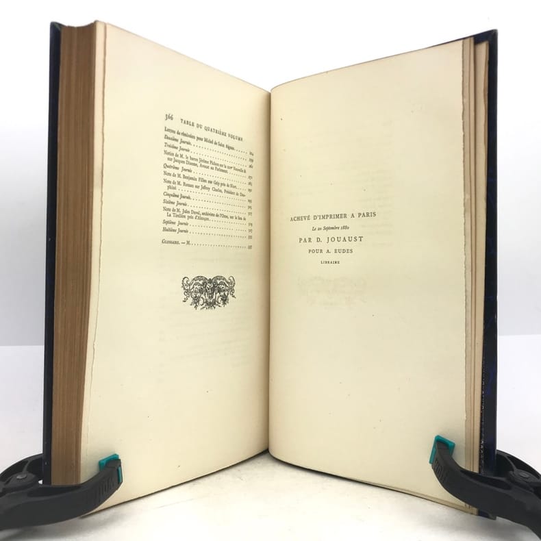 Paris, Auguste Eudes, éditeur, 1880. 4 volumes in-8, brochés, couvertures rempliées et imprimées en noir et rouge. 396 -384-328 et 366 pp. Etuis d'amateur en cartonnage souple avec pièce de titre dorée.