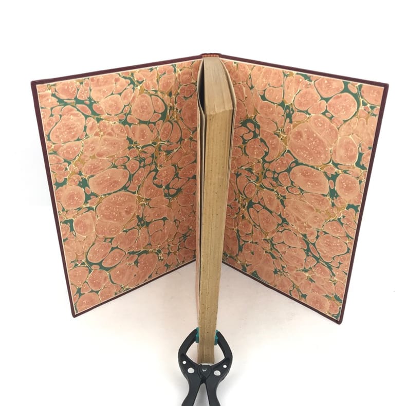 Almanach des Gourmands 1904 - Fondé par Grimod de La Reynière en 1803 - Continué sous la Direction de F.-G. Dumas - Paris Librairie Nilsson - 226 pp. In-4 demi-reliure cuir, dos à 5 nerfs décoré de fleurons dorés, pièce de titre de maroquin vert, titrage doré. Couverture d'origine non conservée, intérieur globalement frais, rousseurs sur la page de faux-titre, quelques rousseurs éparses à l'intérieur de l'ouvrage, rousseurs sur la tranche, inscriptions au crayon en page de garde à la fin du livre. Couverture très légèrement frottée aux coiffes et aux coins, un trou de vers au bas du dos, petits manques au niveau de la pièce de titre.