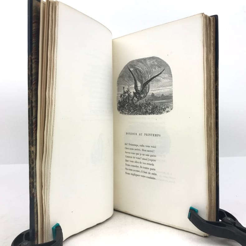 Garnier Frères. 1877. In-8. Cartonnage d'éditeurs. Etat d'usage, Couv. convenable, Dos satisfaisant, Quelques rousseurs. 307 pages - nombreuses illustrations en noir et blanc dans le texte. Page de garde manquante. Tranches dorées. Cartonnage monochrome. Dos et 2e plat légèrement passés.. . . . Classification Dewey : 841-Poésie