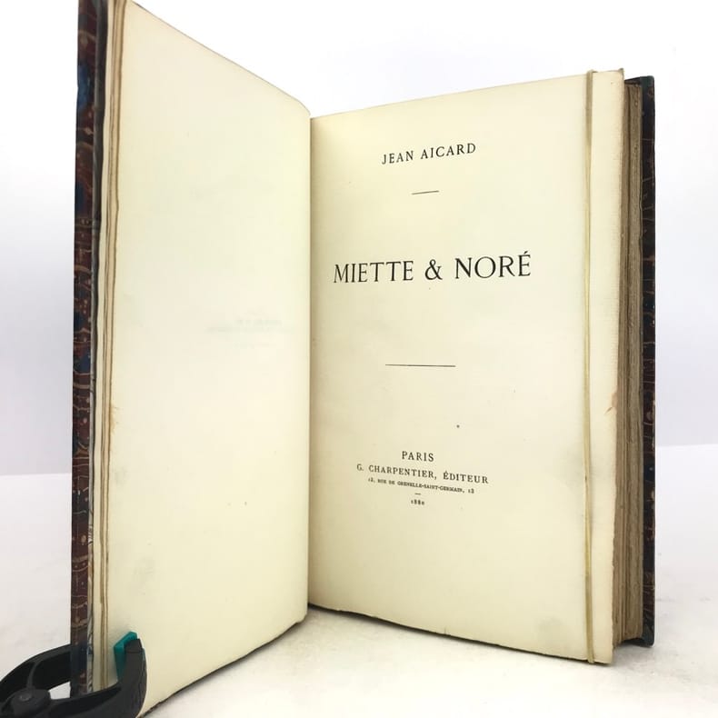 1880, G. Charpentier, in-12 broché de 390 pages, Miette et Noré | Etat : Assez bon état, papier marbré collé sur le dos, étiquette de titre manuscrite collée sur le dos de la jaquette en papier cristal, rousseurs, manque sur la page de faux titre (Ref.: ref85363)