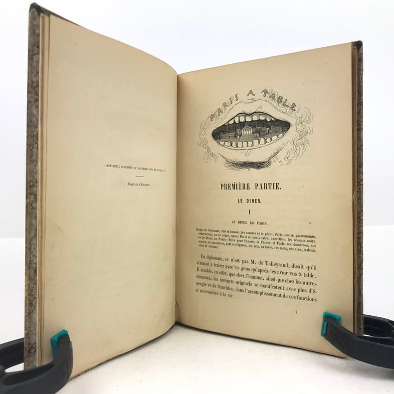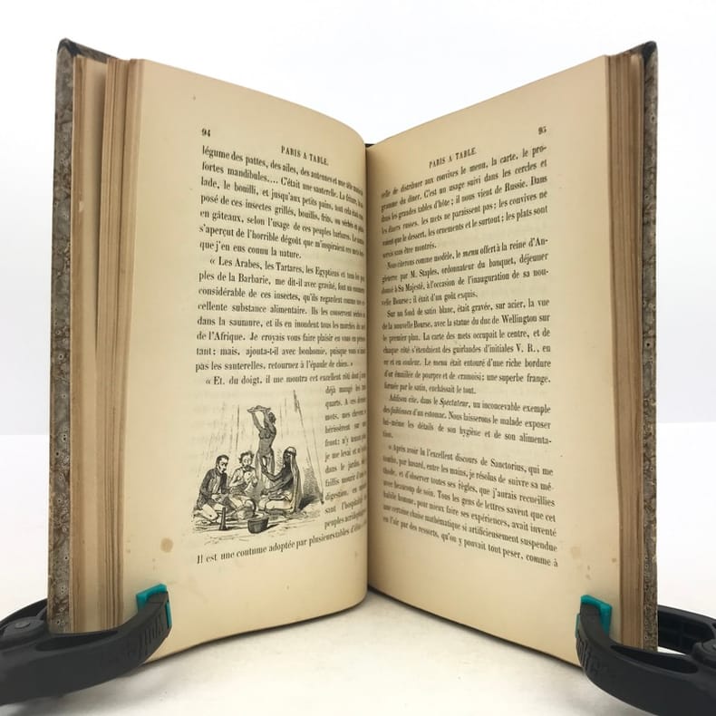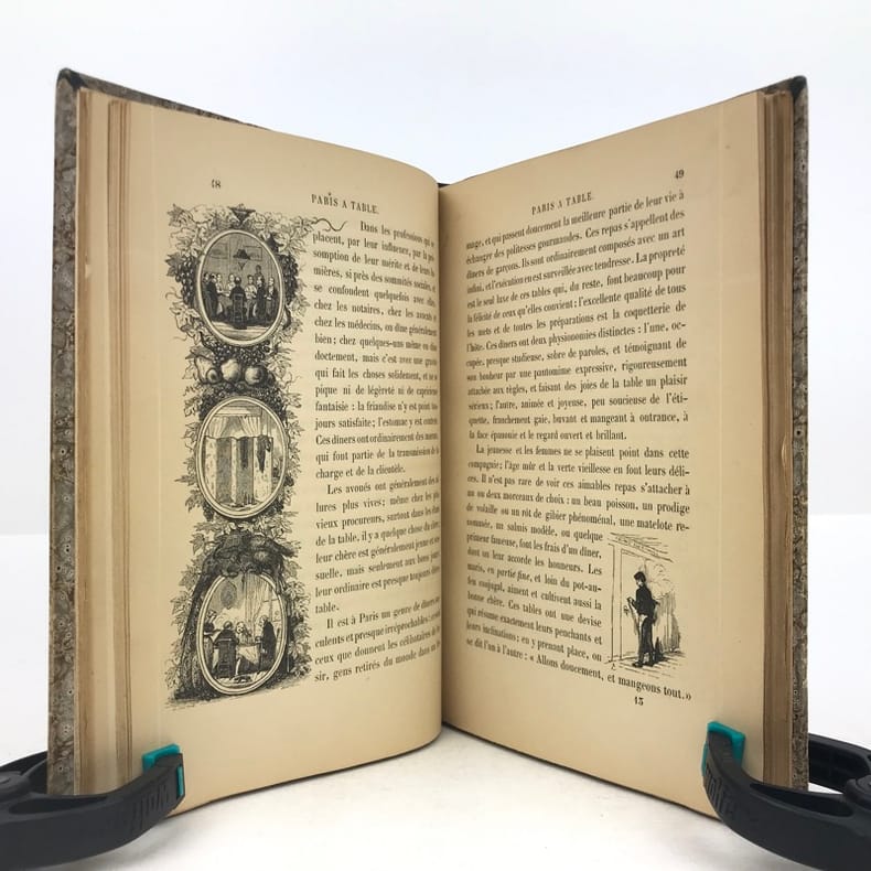 Reliés à la suite : BALZAC (Honoré de). Paris marié. Philosophie de la vie conjugale. Commentée par Gavarni. Paris, Hetzel,1846; 8°, de 84 pp., 20 gravures hors-texte. D'ALBANES(Pseud.de J.-A HAVARD) Les Mystères du collège. Illustré par Eustache Lorsay. Paris, Havard,1845 ; 8°, de VIII pp.,1 frontispice gravé et 164 pp. 3 ouvrages reliés en un volume 8°, en demi-chevrette vert bouteille, dos orné. (reliure de l'époque) Editions originales pour Paris à table et Les mystères du collège.