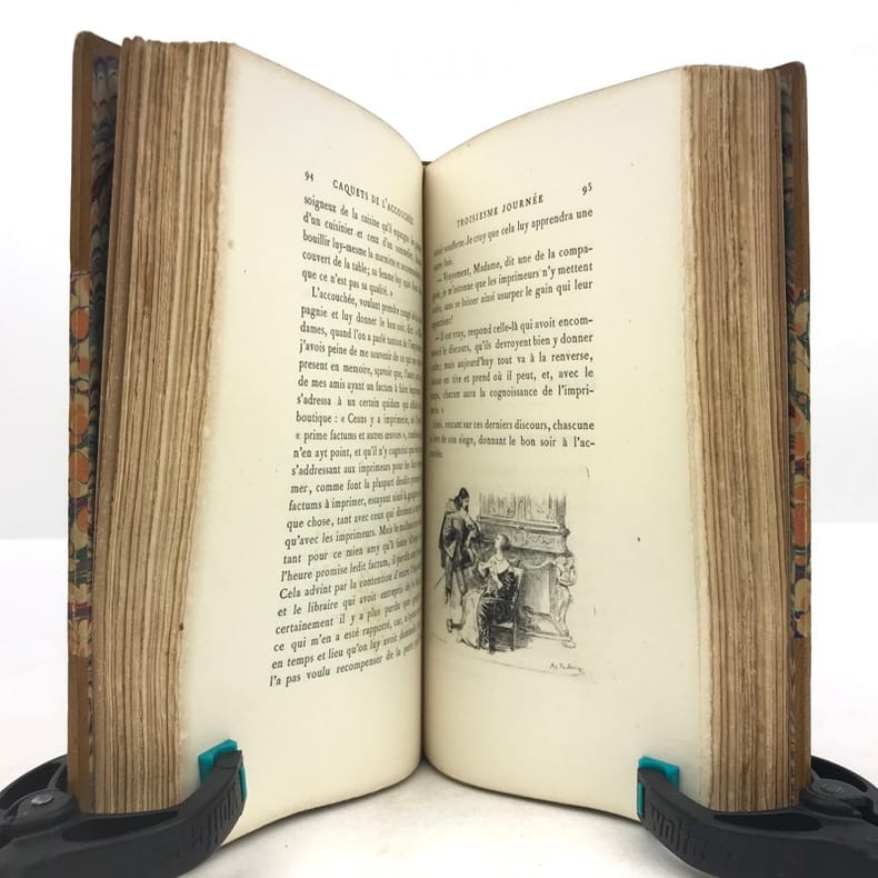 LES CAQUETS DE L'ACCOUCHEE .Recueil général suivi de L ' anti- caquets , les Essais de Mathurine et de La Sentence par corps.Edition complète et revue avec soin.Marpon et Flammarion ,sd , in12(11x16) 1/2 chagrin rouge à coins ,dos à nerfs orné,XVI - 290pp, couvertures conservées..Exlibris manuscrit sur la page de faux titre . Rousseurs éparses.Exemplaire finement relié.