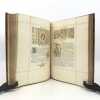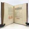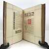 Titre imprimé en rouge, noir, violet et encadré de doubles lignes rouges se croisant ; Mise en page récurrente à l'ouvrage faisant référence aux ouvrages réglés du XVIe siècle. Oeuvre de réconfort ajustée à l'heure présente, traduite, annotée et enrichie de nombreuses compositions nouvelles en rouge, noir et brun (in et hors-texte) par Émile Reiber, Alsacien, Maître ès Arts en la bonne ville de Paris. Ouvrage complet renseignant aussi bien sur les traditions gastronomiques alsaciennes que sur des sujets à caractère ethnographique, sur l'Activité sociale en Alsace au commencement du XVIe siècle et au Développement des Arts : étude des origines alsaciennes, du dialecte alsacien et de son accent, la littérature avec la diffusion des idées par l'imprimerie à la fin du XVe siècle et l'imagerie populaire, les arts avec l'influence de l'École bourguignonne-flamande, les Écoles de Colmar et Strasbourg, les traditions avec les propos de table et le costume, le commerce dans la vallée du Rhin et la route commerciale entre l'Italie et les Pays-Bas... Tirage limité à 700 exemplaires numérotés. Un des 600 exemplaires sur beau papier des Vosges à la forme (N°253). Petites usures, salissures et restaurations à la couverture, salissures et pâles rousseurs internes. (Bitting, 392)