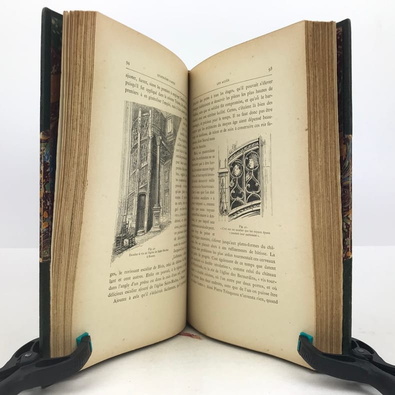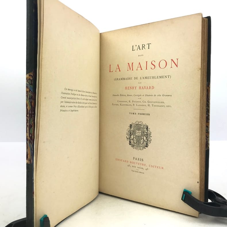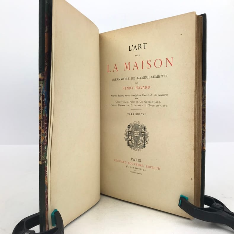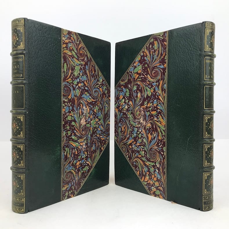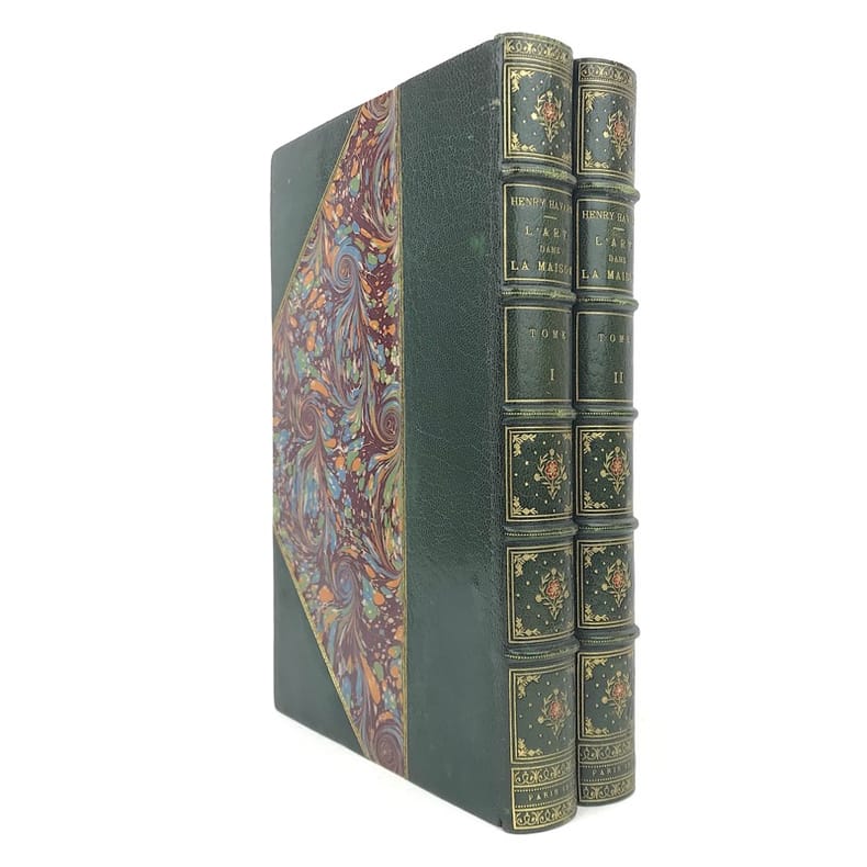2 volumes in-4 (25 x 16,5 cm), demi-maroquin vert à coins (reliure de l’époque, signée par M. Ritter), dos à nerfs très joliment orné aux petits fers dorés avec fleurons mosaïqués, têtes dorées. viii-266-[2] ; [4]-246-[2] pages (complet). Quelques petits frottements et éraflures sur les dos et les plats, marges un peu brunies. Bon état. Nouvelle édition illustrée de très nombreuses gravures in-texte par Corroyer, Prignot, Goutzwiller, Favier, Kauffmann, Laurent, Toussaint, etc. La première fut publiée en 1884. Marie Alexandre Henry Havard (1838-1921), critique d'art et historien d'art français. Bon exemplaire.