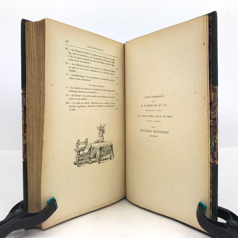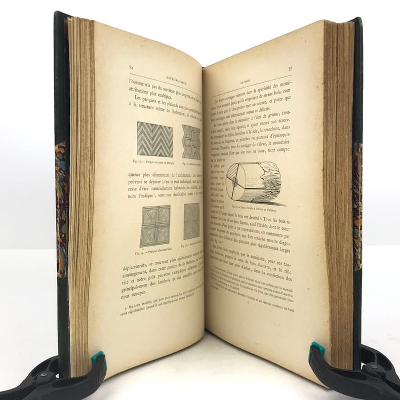 Principaux matériaux employés dans la décoration de l'habitation humaine : bois, fer, bronze, argent, étoffes et tissus (soie, laine), passementerie, papier peint, marbre. Bon état d’occasion