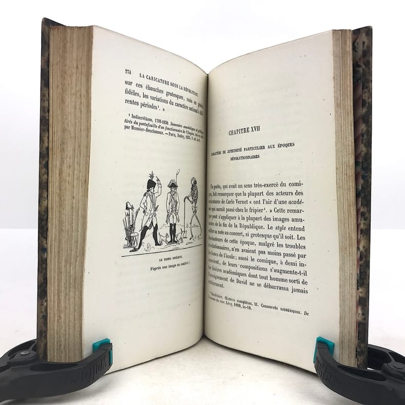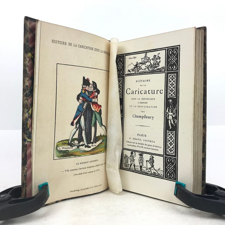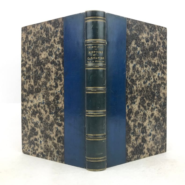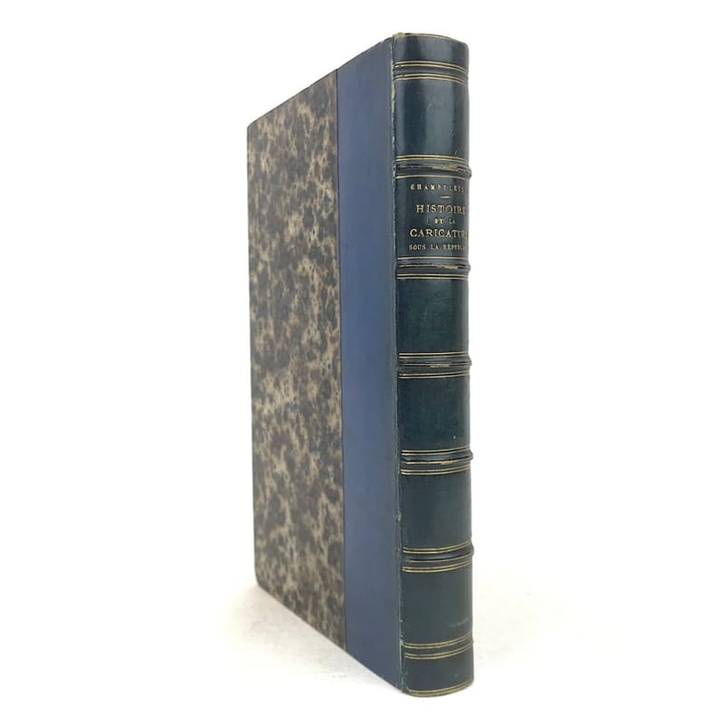1 volume in-12 (18 x 11,5 cm), demi-veau bleu (reliure de l’époque), dos orné de multiples filets dorés, tête dorée. [4]-356 pages (complet). Dos très légèrement passé, petits frottements à la reliure, aux coiffes, aux nerfs et aux charnières, sur les chants et les coins. Quelques feuillets mal placés, mais texte bien complet. Bon état. ÉDITION ORIGINALE illustrée d’un frontispice en couleurs (fac-similé d’une estampe de 1789) et de 48 planches hors texte, comprises dans la pagination. Jules François Félix Husson, dit Fleury, dit Champfleury, (1821-1889), journaliste, critique d’art et de littérature, nouvelliste et romancier français. Bon exemplaire.