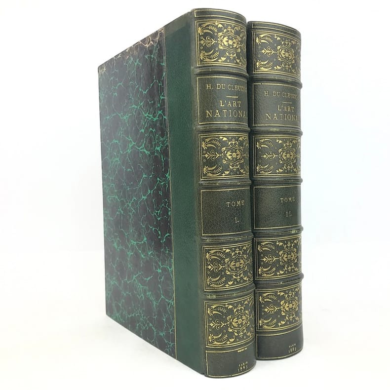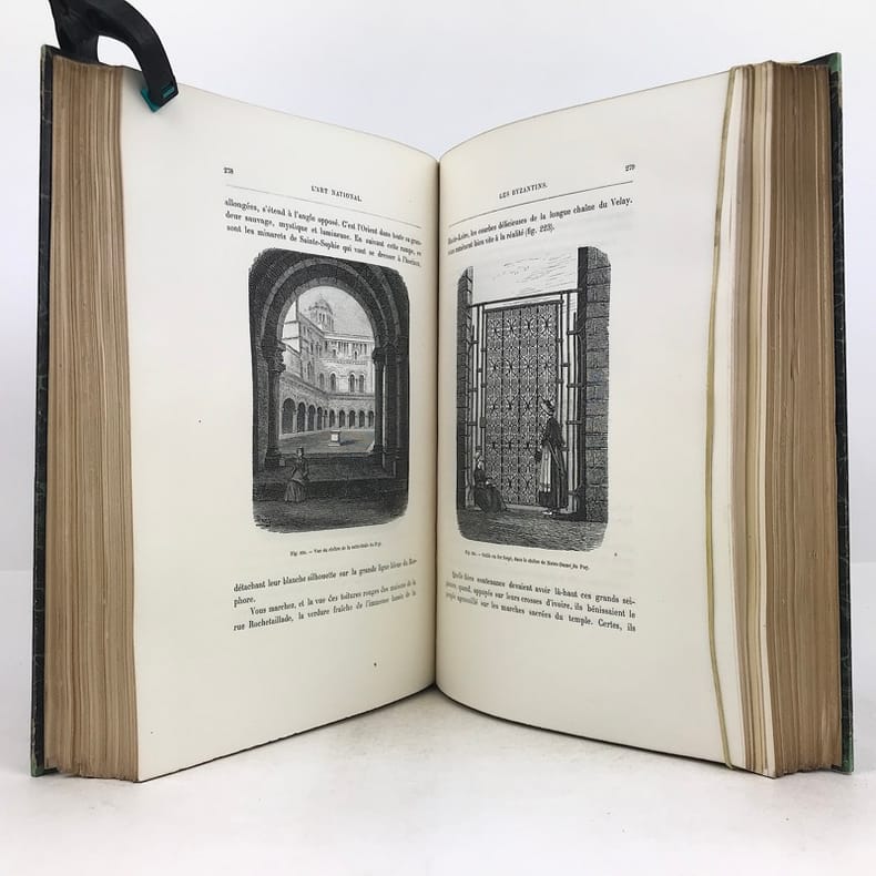 A. Le Vasseur, Succr. Editeur, 1882-1883, 2 volumes de 205x290 mm environ, 566 et 704 pages, demi chagrin bistre et toile gauffrée crème très ornés de motifs noirs rouges et or, titres dorés sur le dos sur pièce de titre rouges, tranches, gardes marbrées. Le tome 1 contient 10 chromolithographies, 10 planches tirées à part et 430 gravures intercalées dans le texte, exécutées d'après les dessins de l'Auteur, le tome 2 contient 10 chromolithographies, 10 planches tirées à part et 494 gravures intercalées dans le texte, exécutées d'après les dessins de l'Auteur. Des rousseurs, une déchirure sur une garde blanche restaurée avec filmoplast, coins légèrement émoussés, petites épidermures sur le cuir, bon état pour le reste.