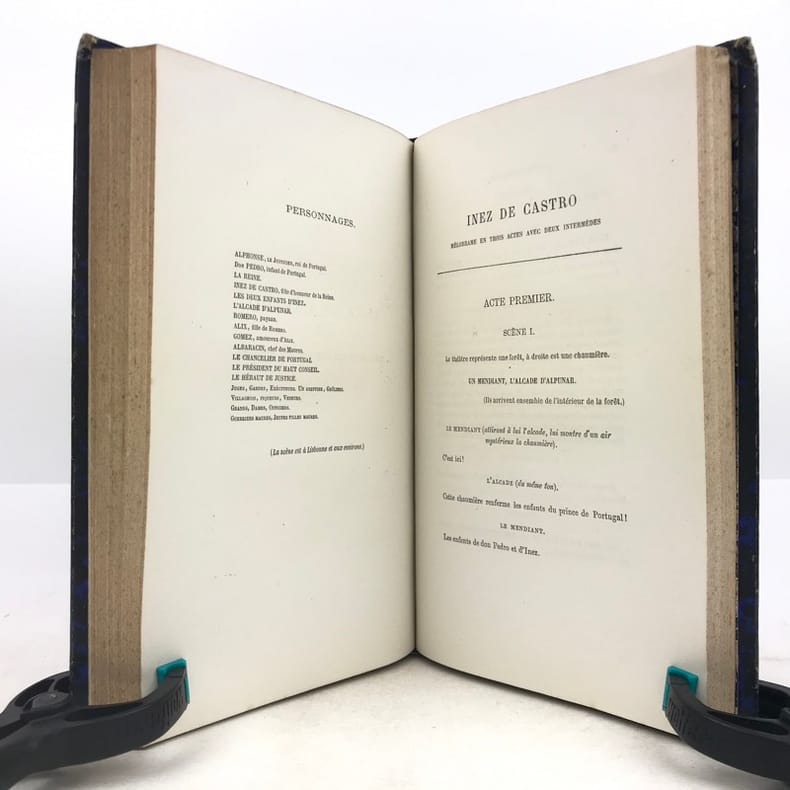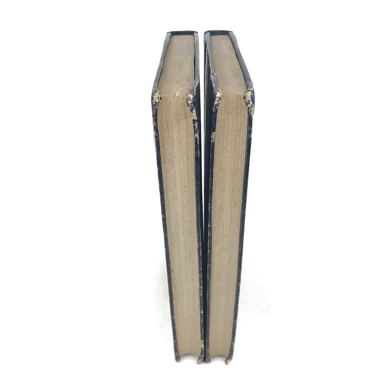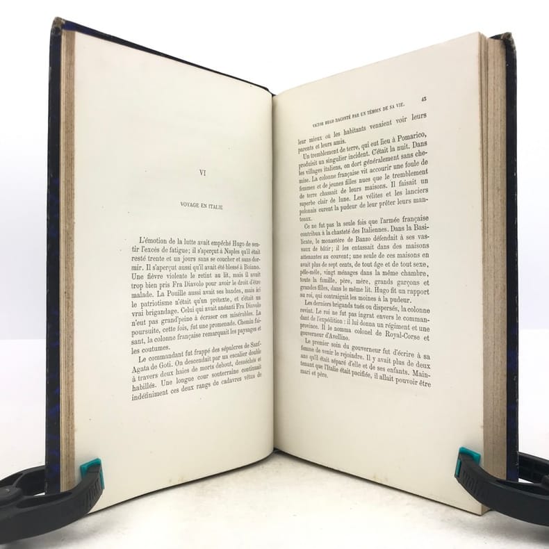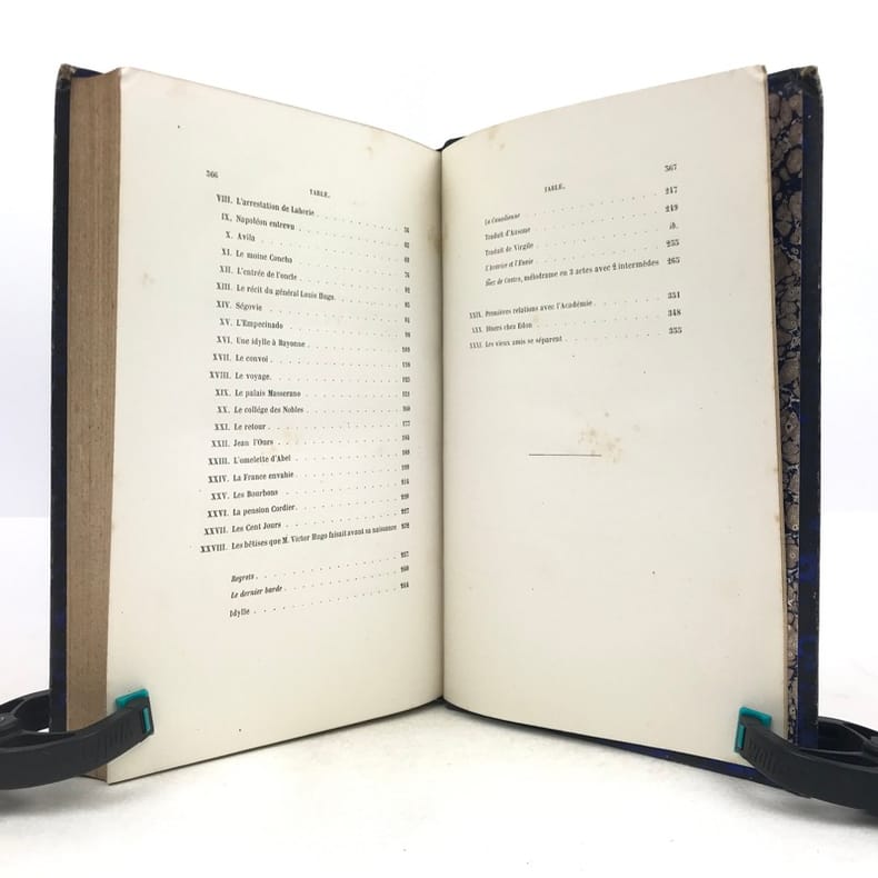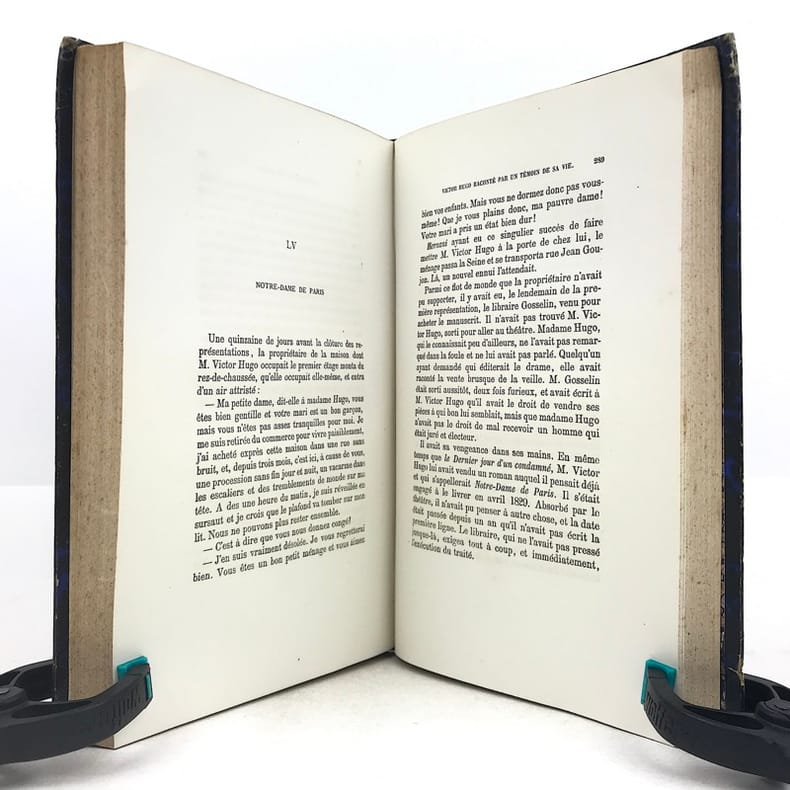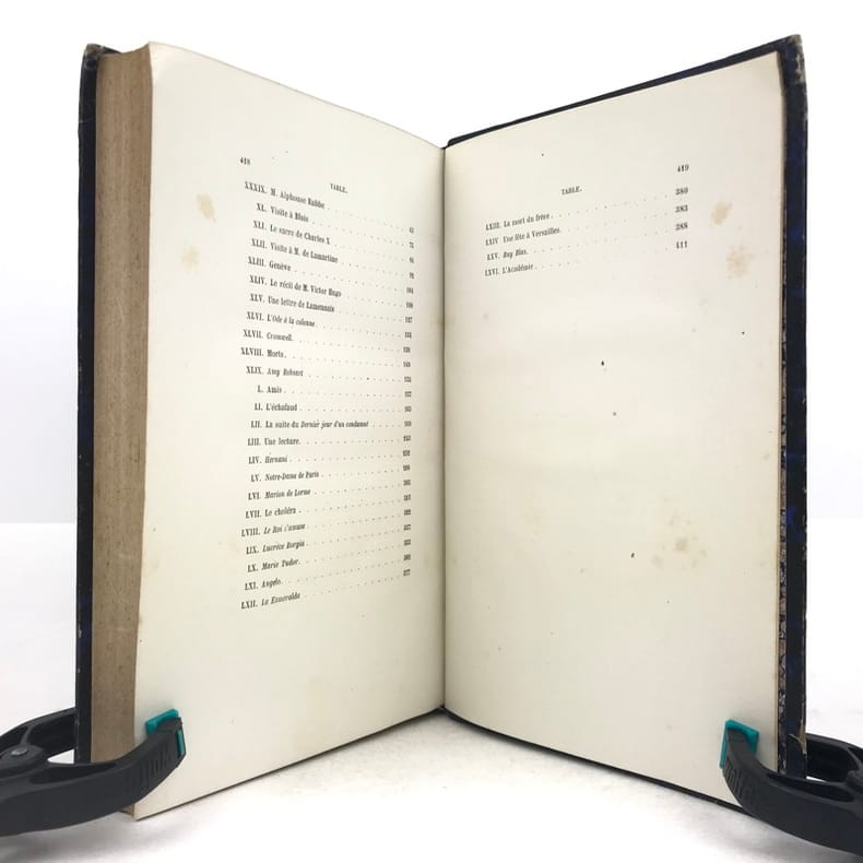 2 volumes in-8 (22 cm x 14 cm), demi-chagrin bleu (reliure de l’époque, dos à nerfs à fleurons dorés, ex-libris contrecollé sur le contreplat de Georges Donckier de Donceel. 367-1 bl. ; 419-1 bl. pages (complet). Frottements à la reliure, claires rousseurs. État très correct. Édition publiée la même année que l’originale. Ouvrage biographique composé par la femme de Victor Hugo, Adèle Hugo. Agréable exemplaire. Vendu 02/10/2025