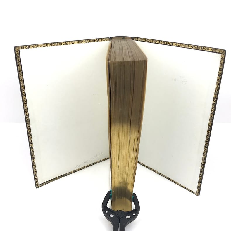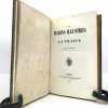 1846 reliure demi-chagrin vert in-octavo (binding half shagreen in-octavo), dos 4 nerfs ceints de filets à froid (spine with 4 raised bands encircled of blind-stamping decoration line) - titre frappé or (gilt title) - entre-nerfs sans motif ornemental au centre rinceaux en pourtour ceints d'un triple filets or (between the raised bands without decoration center - foliages in circumference girded with triple gilt line) - filets perlés en tête et en pied (top and at the foot of spine gilt beaded lines), papier imitation chagrin vert aux plats décorés à froid (paper imitation green shagreen on the cover with blind stamping decoration) - les 2 plats sont légèrement insolés et cicatrices de mouillures uniquement sur le quatrième plat (2 covers lightly faded and scar of waterstains on the back cover), coins très légèrement émoussés (corners very lightly blunt), marque-page en tissu (bookmark in tissue), toutes tranches dorées (all edges gilt), pages de garde en papier moiré (endpaper with paper watered), ex-dono manuscrit à l'encre sur la page de garde blanche (handwritten ex-dono ink on the white endpaper), illustrations : gravures hors-texte avec serpente dont le frontispice (illustrations : engravings with tissue which frontispiece), rousseurs passim , VIII pages + 632 pages, 1846 à Paris Belin-Leprieur Libraire-Editeur - 5 rue Pavée-Saint-André-des-Arcs,