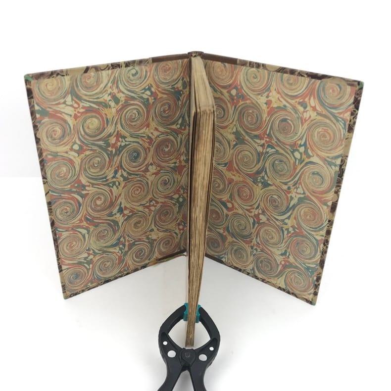 Réunion - en un volume - de trois textes de Beaumarchais. Le Mariage de Figaro est l'une des éditions parues à la date de l'originale avec cette mention au dernier feuillet : ''achevé d'imprimer pour la première fois le 28 février 1785''. L'Autre Tartuffe ou la mère coupable est en originale. Il s'agit d'une ''édition imprimée sans l'autorisation de l'auteur. C'est une contrefaçon tronquée, dont la parution poussa les amis de l'auteur à publier la suivante à l'insu même de Beaumarchais. La première édition avouée par l'auteur a paru en 1797. Malgré la mention ''édition originale'' portée en page de titre, cette édition n'est pas la première''. (in Tchemerzine). Cordier, Bibliographie des oeuvres de Beaumarchais, 135 (pour Le Mariage) - Tchemerzine II, Bibliographie d'éditions originales et rares d'auteurs français, p. 22 - Cioranescu I, Bibliographie de la littérature française du XVIIIème, 10400 (pour La Mère coupable, avec une collation différente) - Cordier, Bibliographie des oeuvres de Beaumarchais, 273 (pour La Mère coupable). Angles émoussés. Frottements épars affectant la reliure. Perte de papier marbré au second plat. Dont la coupe est par ailleurs nettement élimée.Petit manque affectant le fond de cahier du premier feuillet. Quelques rousseurs dans le texte. Petite déchirure angulaire affectant un feuillet. Deux petites déchirures et une perforation affectant le faux-titre du deuxième texte. Les deux derniers feuillets sont légèrement effrangés en marge. Du reste, bonne condition.